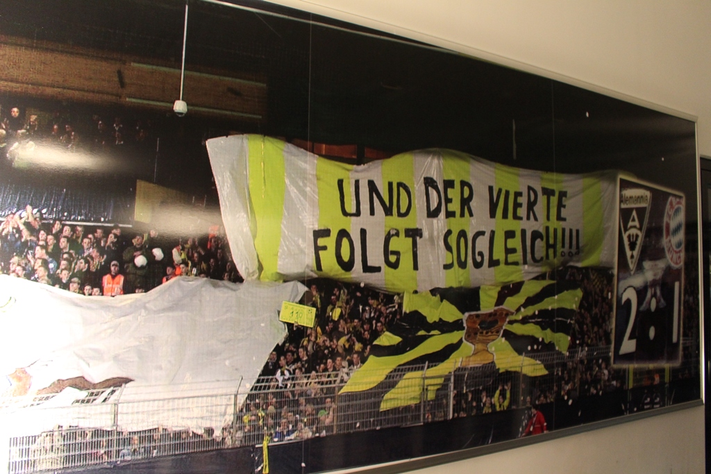 Am 4. Februar vor genau zehn Jahren traf die Alemannia im Viertelfinale des DFB-Pokals auf den amtierenden Deutschen Meister aus München und siegte nach Toren von Blank und Meijer mit 2:1. Es war der Auftakt zu einem grandiosen Jahr in der Vereinsgeschichte. Die Alemannia lud am vergangenen Dienstag zur Auftaktveranstaltung der Reihe „Alemannia inTEAM“ in den Spielertunnel des neuen Tivoli und rund 200 Fans und Freunde der Schwarz-Gelben kamen, um den Anekdoten der Pokal-Helden zu lauschen.