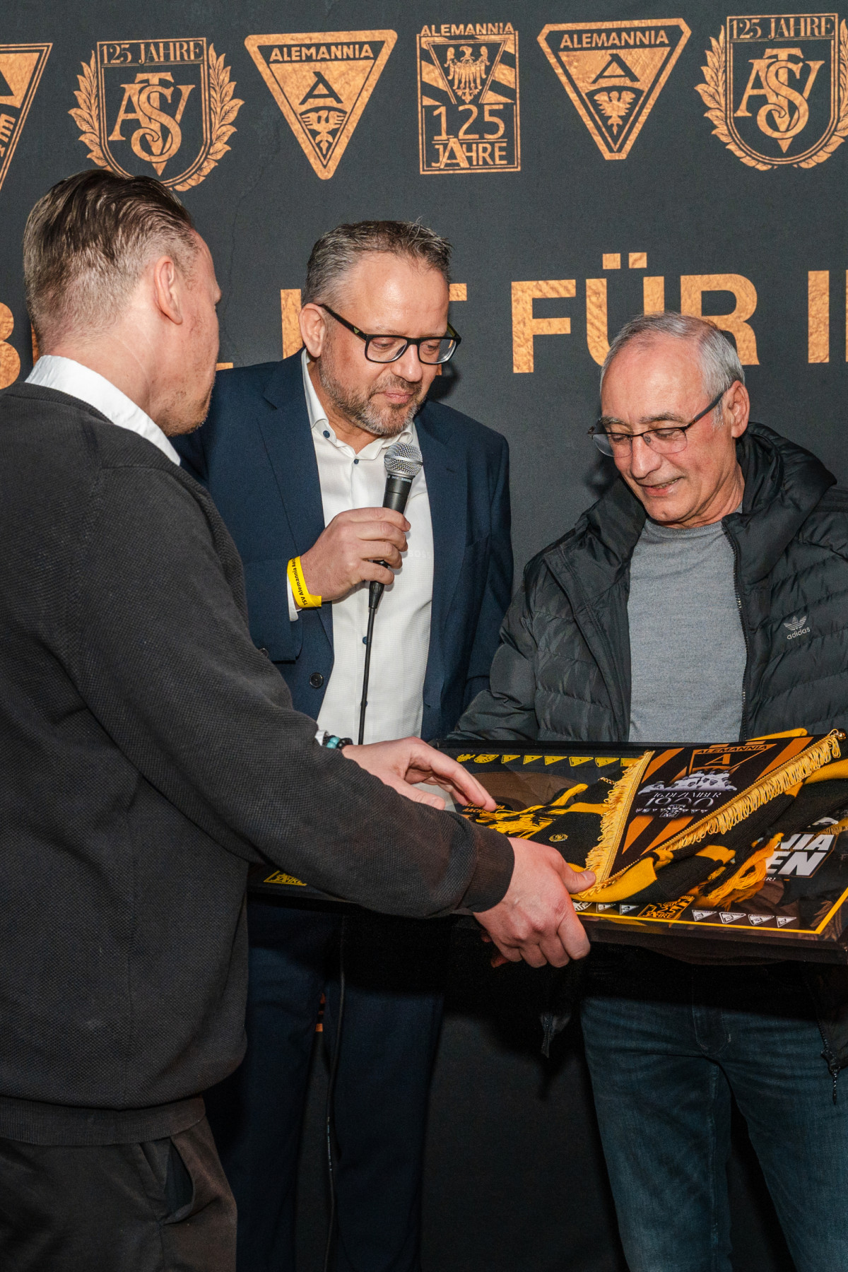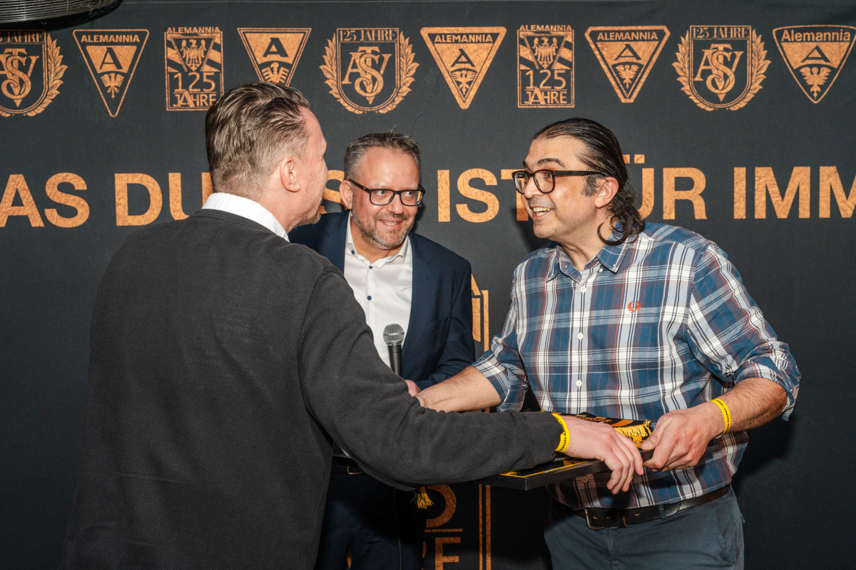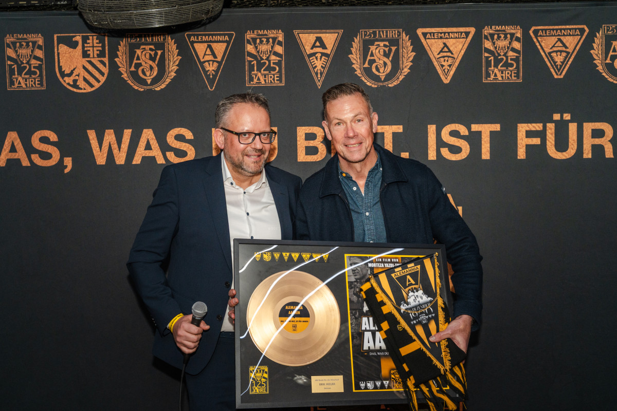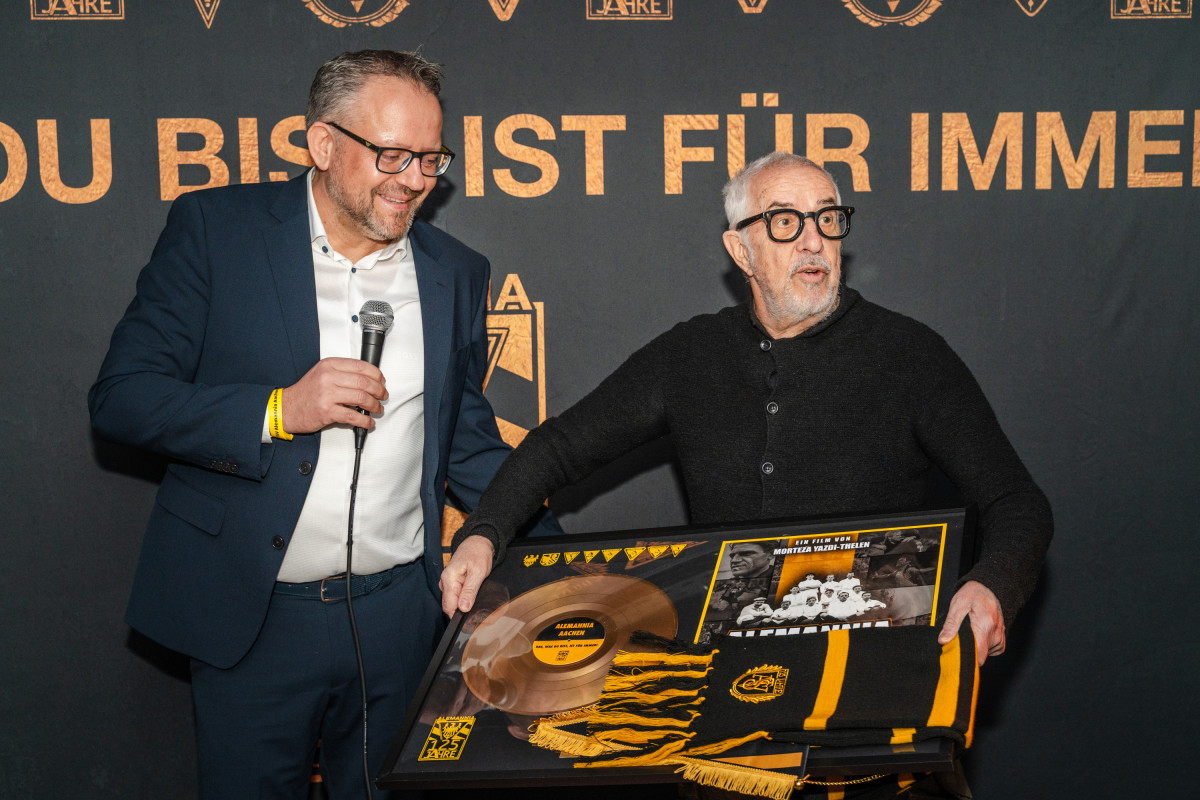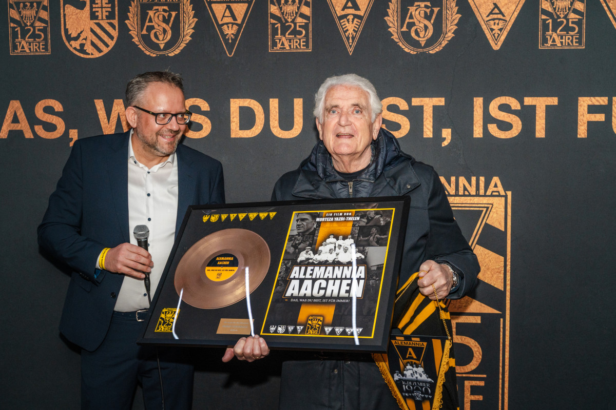 Ein Höhepunkt folgte bereits vor Filmbeginn: Regisseur Morteza Yazdi-Thelen und Tobias Mantel wurden für ihre Arbeit am Film geehrt und erhielten von Chris Nießen und Oliver Wagner aus dem Präsidium der Alemannia eine goldene Schallplatte. Auch zahlreiche Mitwirkende des Films wurden im Rahmen der Premiere ausgezeichnet – stellvertretend für viele, die ihre Geschichten und Erinnerungen in dieses besondere Projekt eingebracht haben.