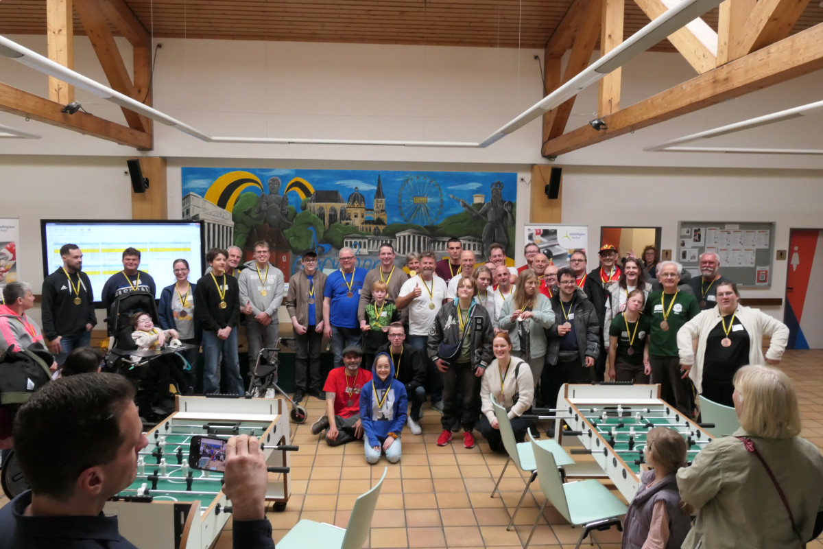 Am Sonntag, 12. April 2026, wurde in den Räumen der Lebenshilfe Aachen Werkstätten & Service GmbH das Finale der inklusiven Tischkickerliga der StädteRegion Aachen ausgetragen. Von 14 bis 18 Uhr traten insgesamt 29 Teams mit je zwei Personen gegeneinander an. Teilnahmeberechtigt waren Teams, bei denen mindestens eine Person zwischen 10 und 17 Jahren alt, über 60 Jahre alt oder eine körperliche und/oder geistige Behinderung hatte. Organisiert und durchgeführt wurde das Finale von der Abteilung Tischfußball des TSV Alemannia Aachen 1900 e.V.
