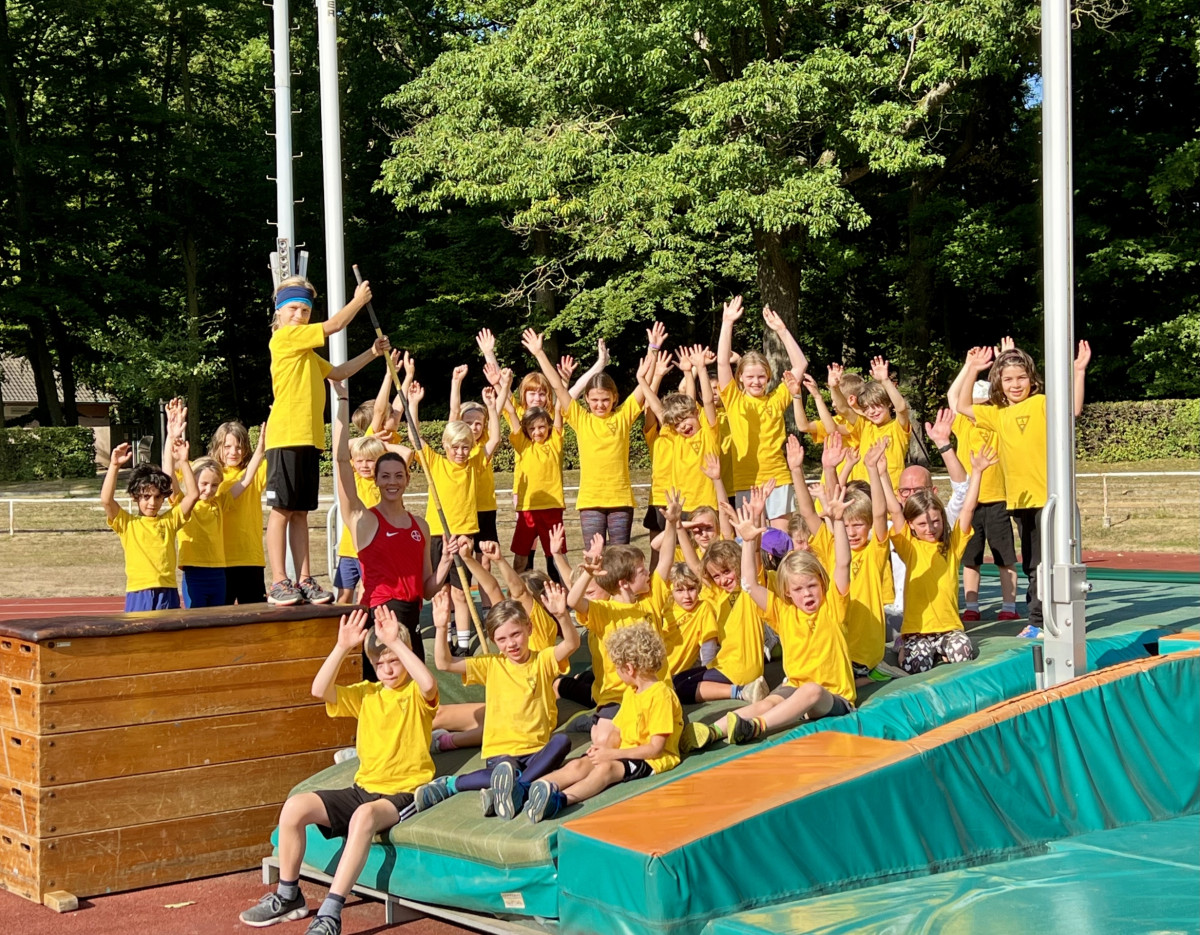 Deutsche Hallenmeisterin Katharina Bauer trainiert mit 40 Kindern im Waldstadion