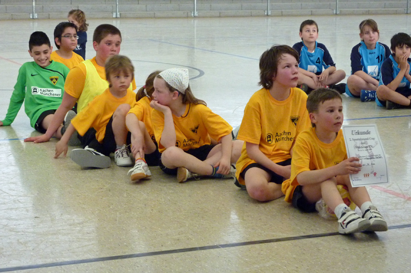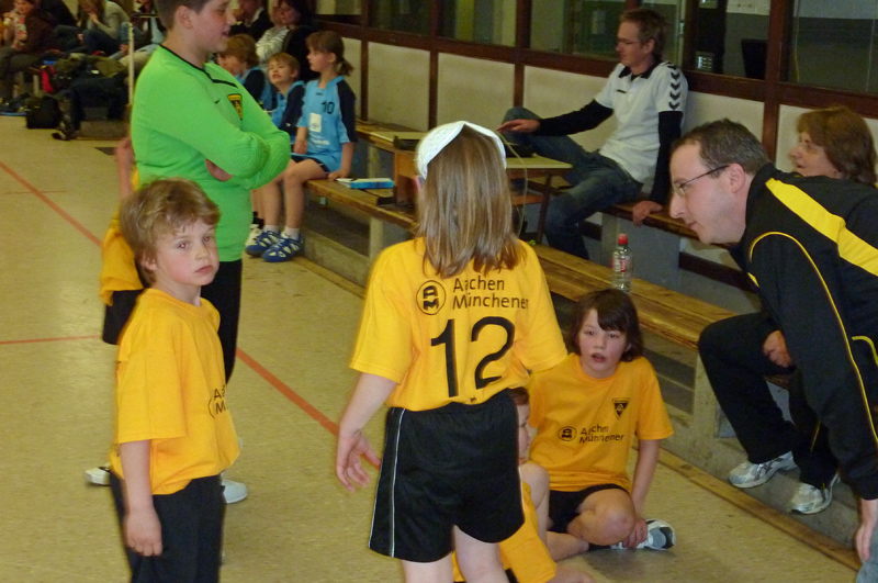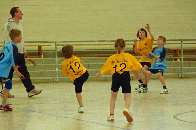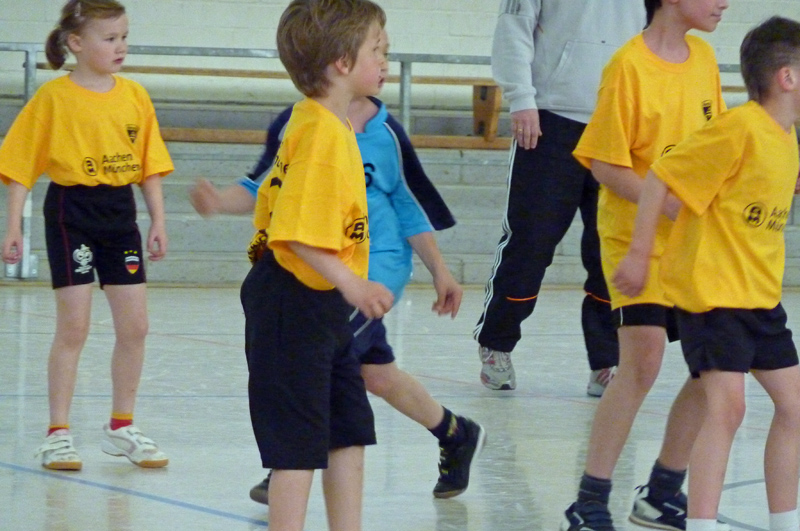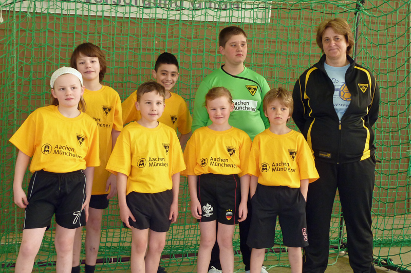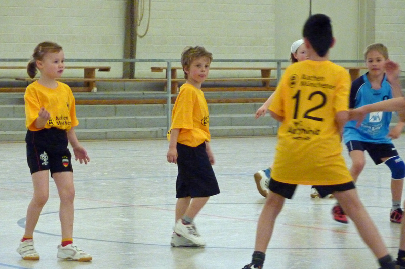 Am Sonntag, 11. April, nahm die Handball-Abteilung der Alemannia an ihrem ersten Turnier beim TV Weiden teil. Die ersten Spieler der Handball-Abteilung Cedric Hammer, Kilian Pestel, Aaron Quinker, Elisa Quinker, Judith Quinker, Furkan Sayin und Abdurraman Sevin taten sich unter der Leitung ihrer Trainer Petra Krause und Jörg Pestel anfangs schwer. Doch Aaron Quinker beendete die anfängliche Torflaute schließlich zum zwischenzeitlichen 1:7 gegen den TV Weiden. Am Ende mussten sich die Schwarz-Gelben aber 4:11 geschlagen geben. Auch im zweiten Spiel gelangen den jungen Handballern vier Tore und sie zeigten sich spielerisch verbessert, auch wenn sie gegen den späteren Turnierzweiten HSV Troisdorf am Ende mit 4:13 unterlagen. Gegen den TV Roetgen hielten die Aachener sogar sehr gut mit und verloren nur noch mit 6:10, wobei sie durchaus noch mehr Torchancen hatten. Trotz des letzten Platzes war aber das Wichtigste, dass es allen viel Spaß gemacht hat. Und obwohl ferienbedingt keinen Auswechselspieler zur Verfügung standen und einige Spieler im Verlauf des Turniers kleinere Blessuren erlitten, hielten die Nachwuchs-Handballer alle bis zum Ende durch und wurden dafür mit einem Ball und einer Urkunde für ihren unbändigen Willen und die tolle Kampfbereitschaft belohnt.
