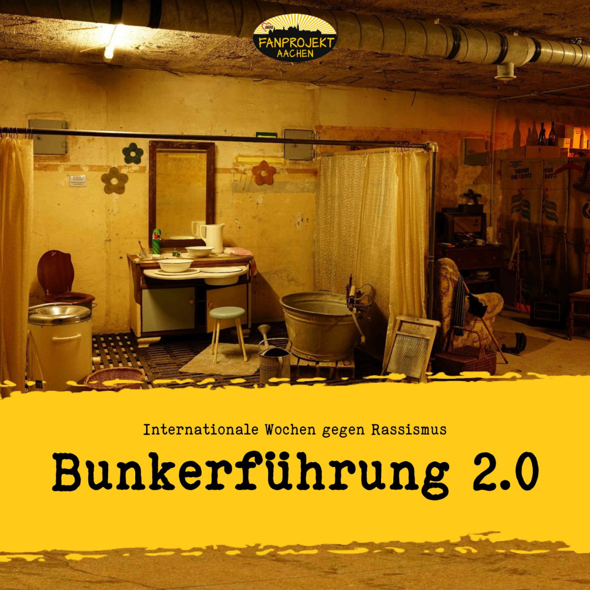 Anlässlich der diesjährigen "Internationalen Wochen gegen Rassismus" bietet das Fanprojekt Aachen in Kooperation mit Alemannia Aachen Interessierten einen spannenden Rundgang durch den Bunker in der Scheibenstraße an. Dieser gehört zu einer Reihe von Luftschutzanlagen, die ab 1941 in Aachen entstanden. In seiner baulichen Gegebenheit noch weitgehend im Originalzustand erhalten ist er Denkmal und Mahnmal zugleich. Gebaut von Zwangsarbeitern war der Bunker Schutzraum für die Zivilbevölkerung während des 2. Weltkrieges und Wohnraum nach dem Krieg.