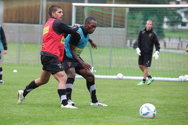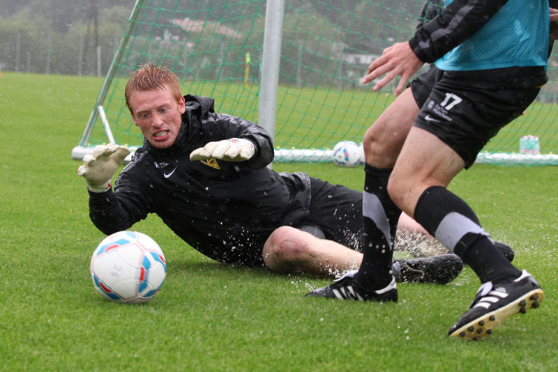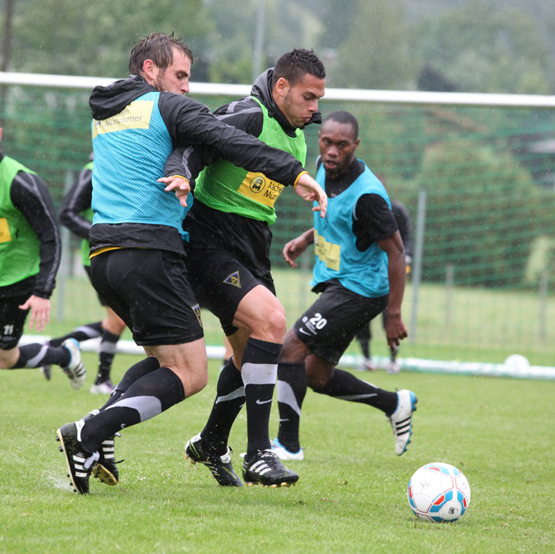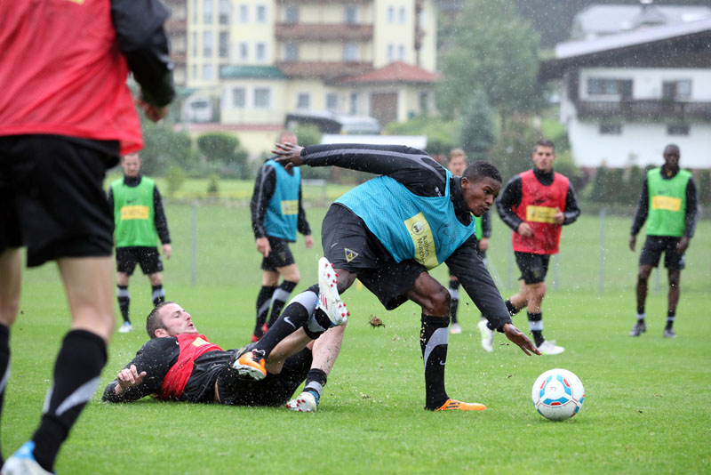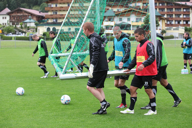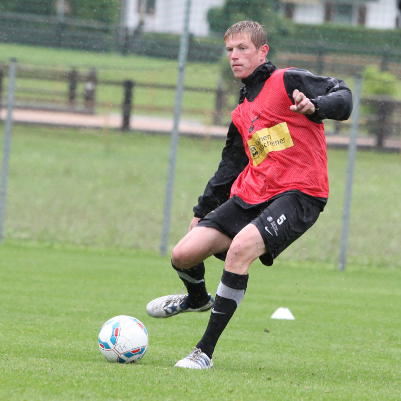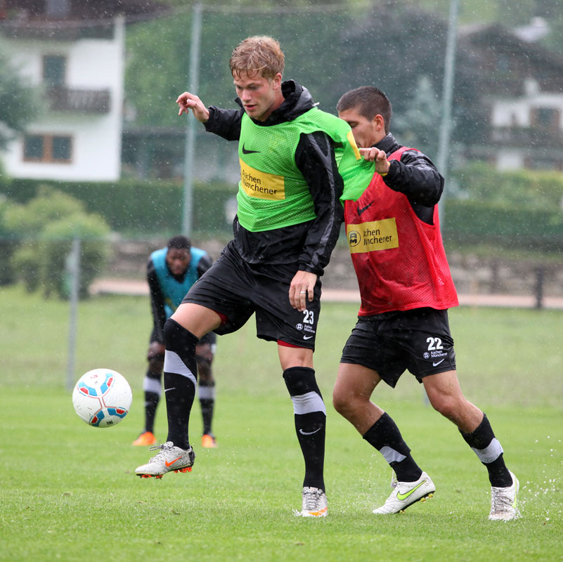 Jetzt rackert der schnelle Stürmer problemlos durch den Matsch. „Ich bin zunächst einmal froh, dass ich schmerzfrei durch den Tag komme – vom Muskelkater abgesehen. Aber das sind Schmerzen, die ich gerne in Kauf nehme“, sagt Bäcker. Einen gewissen Rückstand macht er selbst noch aus, was durchaus normal ist. Jeder Trainingstag verkleinert aber die Lücke zu den Kollegen. Was Bäcker bereits geschafft hat, rückt auch bei Kevin Kratz näher. Rekordverdächtige sieben Tage nach seiner Leisten-Operation traf der Mittelfeldspieler am Donnerstag am Walchsee ein und trainierte mit den leicht angeschlagenen Shervin Radjabali-Fardi und Jonas Strifler.