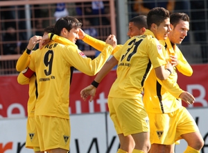 Die Blumen nahm Hyballa gerne an, doch er haderte dennoch ein wenig mit dem Ergebnis. „Wir wollten hier gewinnen“, bekannte er selbstbewusst. „Wir sind mit dem einen Punkt hier in Bochum nicht ganz zufrieden, daran sieht man, wie unsere Ansprüche inzwischen gewachsen sind“, erklärte Routinier Thomas Zdebel, der vom Bochumer Publikum gefeiert wurde – Lohn für seine jahrelangen Leistungen beim VfL. Der 37-Jährige war das Beispiel dafür, wie gut das Team inzwischen funktioniert. Genau wie Casper und Demai lieferte Zdebel eine starke Leistung ab, leitete den Ausgleich mit einem starken Pass auf Zoltán Stieber ein. „Man hat heute gesehen, dass sich der Trainer auf den 12., 13. und 14. Spieler verlassen kann“, sagte Zdebel, der die eigenen Ansprüche weit nach hinten schob. „Ich habe heute davon profitiert, dass Kevin sich verletzt hat. Jeder möchte immer von Beginn an spielen, aber es geht immer um die Mannschaft, und die hat nicht elf, sondern 18 Spieler.“