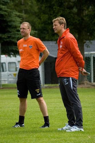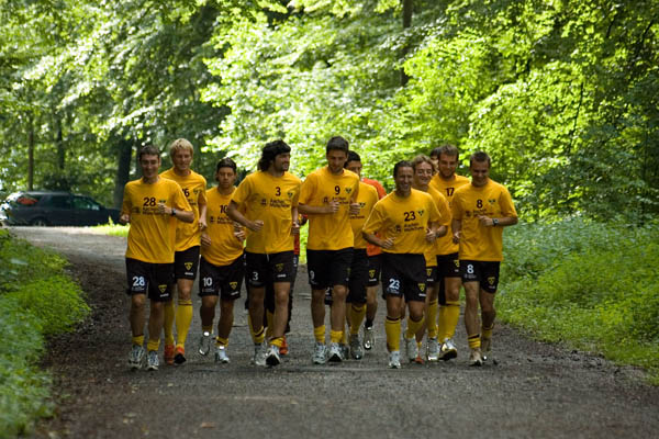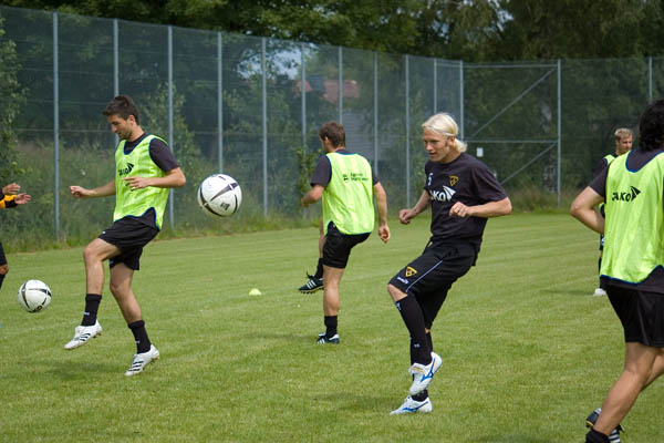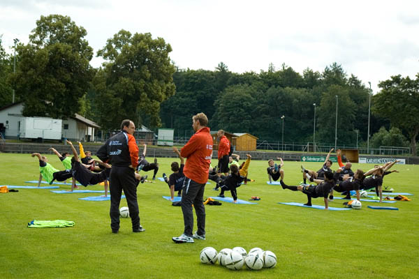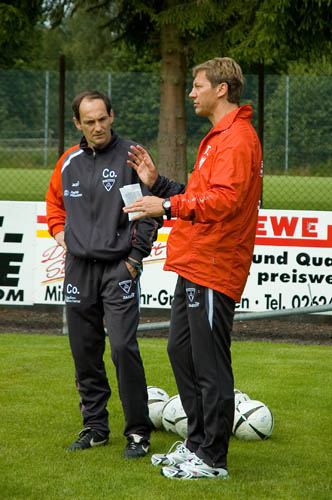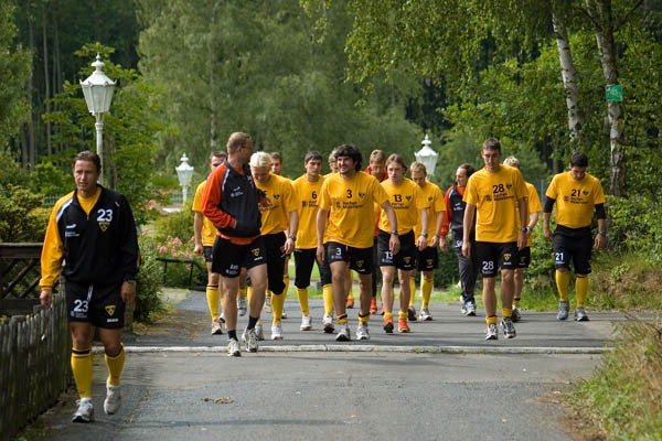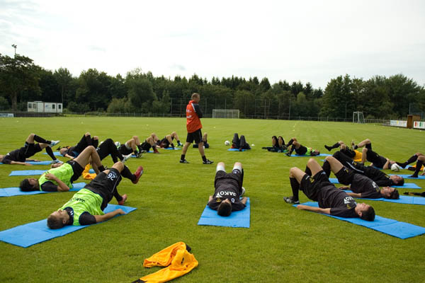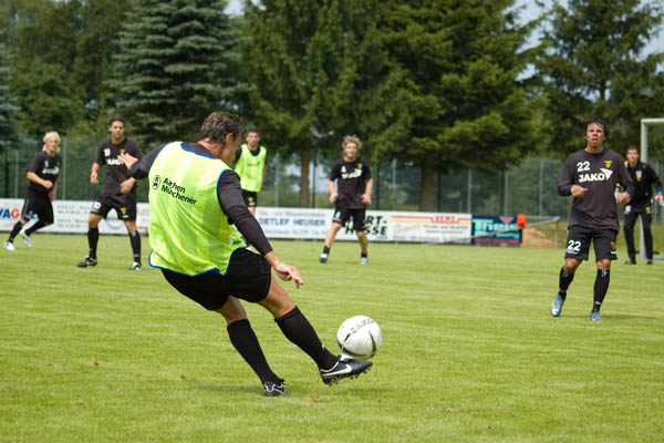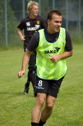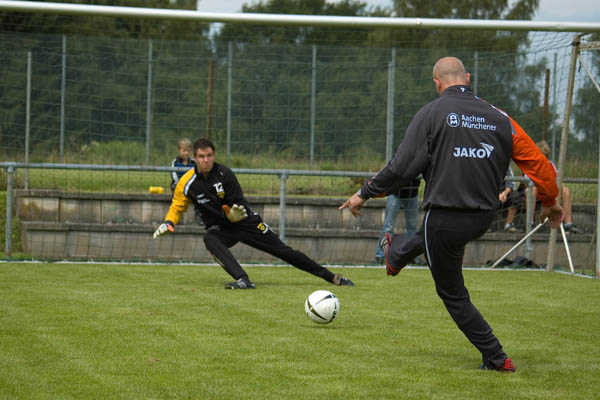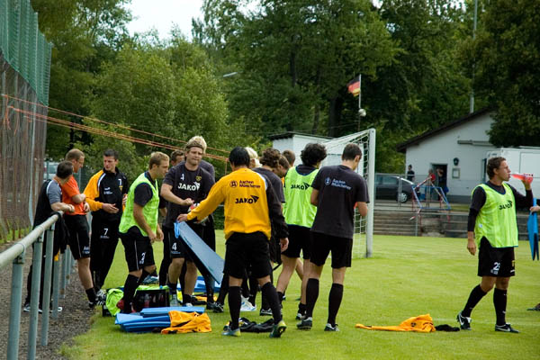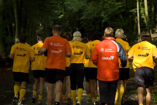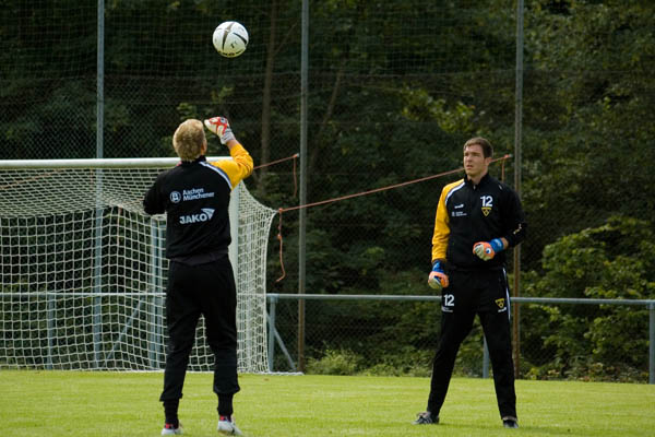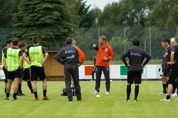 „Die Mannschaft zieht sehr gut mit“, sagt Buchwald. „Auch wenn langsam die Müdigkeit kommt, ist die Bereitschaft weiterhin sehr hoch. Die Laktatwerte haben bewiesen, dass alle Spieler in der Sommerpause ihre Hausaufgaben erledigt haben.“ Trotz der hohen Belastung gibt es nur kleine Weh-Wehchen. Jeffrey Leiwakabessy plagen Rückenbeschwerden, der Niederländer soll aber am Montag das normale Pensum absolvieren. Matze Lehmann schlägt sich mit Magenproblemen herum. Die Teilnahme von Alex Alves am Trainingsbetrieb der Alemannia endete am Wochenende. „Er will sich durchchecken lassen, seine Werte waren nicht in Ordnung“, erklärt Buchwald.