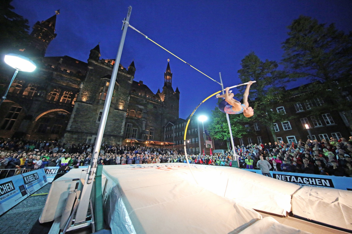 Beginn des NetAachen-Domspringens ist um 15.30 Uhr mit einem Einlagespringen der Frauen. Der Hauptwettkampf startet um 18.30 Uhr. Die Leichtathleten laden alle herzlich ein, sich dieses sportliche Highlight aus nächster Nähe zu erleben und empfehlen sich frühzeitig die raren Plätze auf dem Katschhof zu sichern. Gänsehaut-Atmosphäre ist garantiert beim 14. NetAachen-Domspringen.