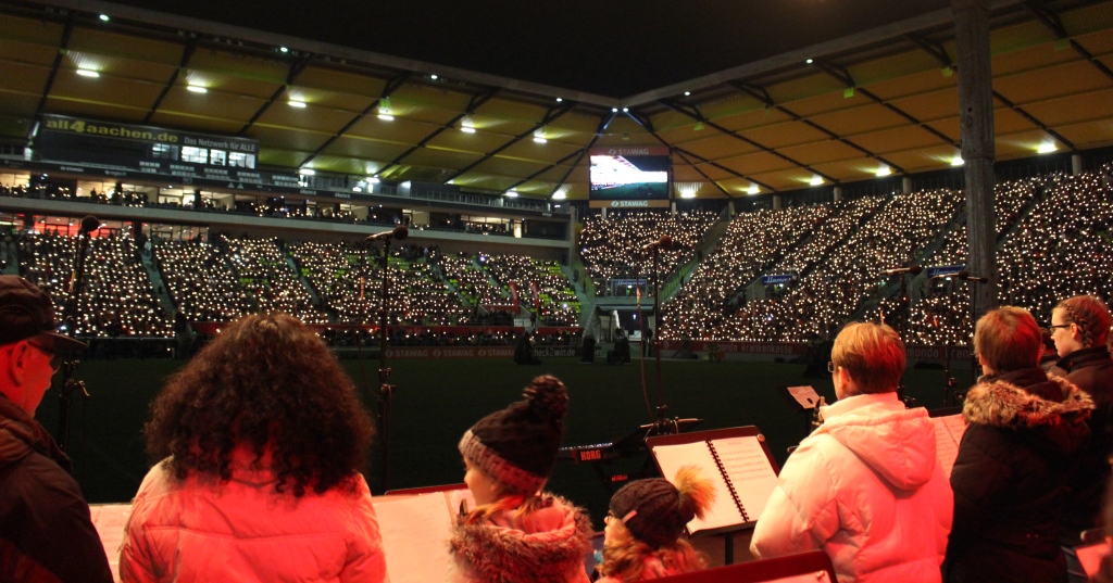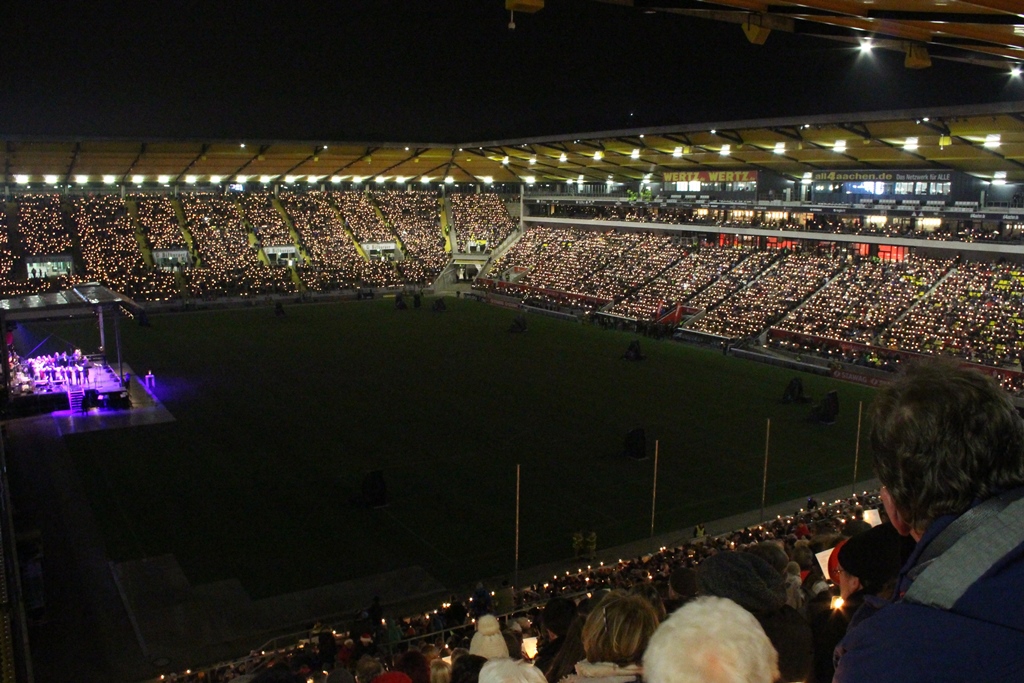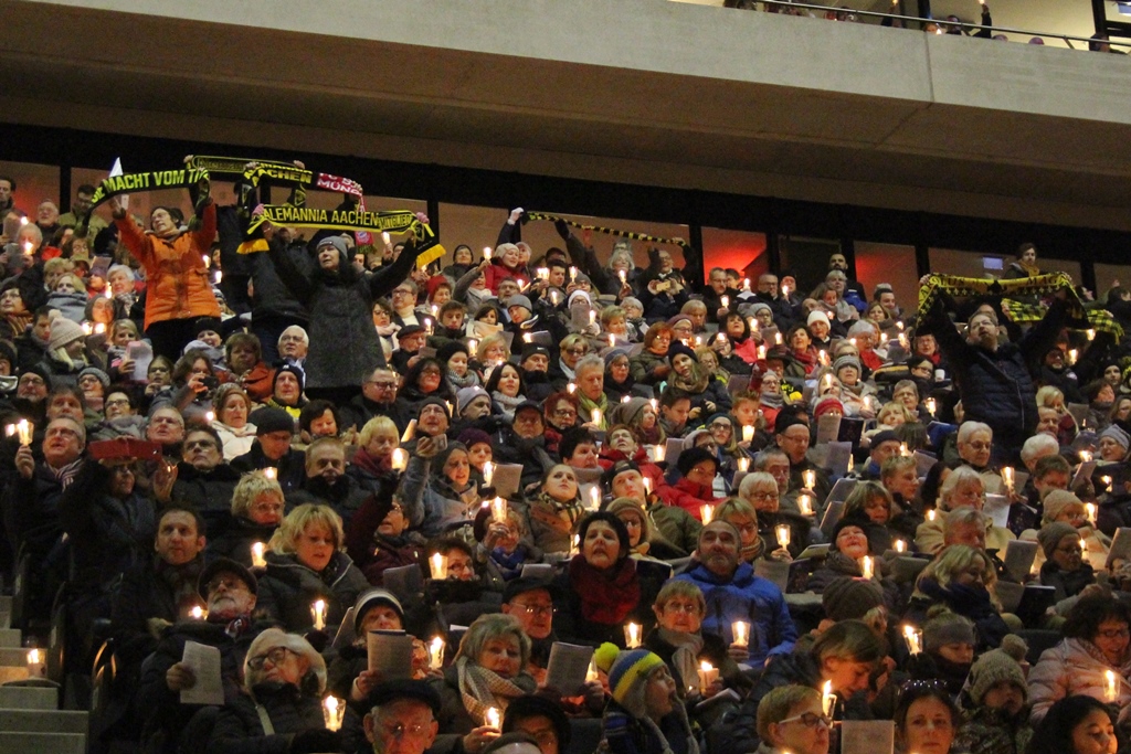 Im Wohnzimmer der Alemannia wurde es am Sonntagabend andächtig. Über 20.000 Öcher kamen laut Angaben der Veranstalter zum Weihnachtssingen am Aachener Tivoli und sorgten bei der 4. Auflage für einen Besucherrekord.