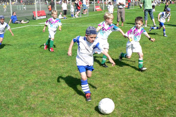 Am Samstag um 9.45 Uhr fiel der Startschuss, bis 18.30 Uhr trafen die Spieler der E- und G- Juniorenmannschaften aufeinander. Am Sonntag trugen die F- und G-Junioren ihre Spiele auf dem Kunstrasen aus. Und alle Mannschaften durften sich auf die volle Unterstützung der Fans verlassen. Zahlreiche Eltern und Freunde der Akteure waren gekommen, um ihr Team anzufeuern und das leckere Angebot der Cafeteria oder des Grillstandes zu genießen. Und auch die hart gesottenen WM-Anhänger kamen auf ihre Kosten. Am Ende zählte natürlich die faire Teilnahme aller. Daher bekamen auch alle Spieler ein T-Shirt zur Erinnerung. Die Siegermannschaften der Turniere erhielten ein unterschriebenes Trikot der Profis. Und für die vielen Jugendteams endete das Turnierwochenende mit einem zufriedenen Lächeln.
