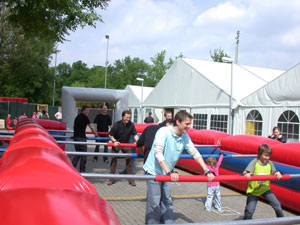 Während die Erwachsenen bei Kaffee und Kuchen den Nachmittag genossen, amüsierten sich die kleinen Besucher auf dem Gelände der Alemannia-Geschäftsstelle am Tivoli prächtig. Kinderschminken, Jongleure, eine Hüpfburg und ein Riesen-Kicker sorgten für jede Menge spaß und wem das noch nicht reichte, konnte bei einer Stadionführung den Hexenkessel Tivoli unter die Lupe nehmen.