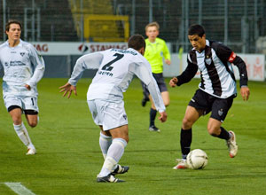 Das brasilianische Nachwuchsteam, das sich derzeit auf Europareise befindet, hatte bereits am vergangenen Samstag beim Testspiel gegen ein Perspektivteam des Zweitligisten 1899 Hoffenheim eine 1:3-Niederlage kassiert. Und auch die Aachener brachten die Gäste schon früh auf die Verliererstraße. Noch keine Minute war gespielt und die Alemannia führte. Nachdem U23-Akteur Domenico Cozza nur den Pfosten getroffen hatte, vollendete Marius Ebbers zum 1:0. Weitere 90 Sekunden waren vergangen als die Schwarz-Gelben auf 2:0 erhöhten. Ausgangspunkt war wieder Ebbers, der in die Mitte geflankt hatte, von wo aus der Brasilianer Werley ins eigene Tor traf. Nachdem sich die Gäste ein wenig von dem Schock der frühen Gegentreffer erholt hatten, kamen sie auch durch Edilson (8.) und Rodrigo (10.) zu ersten guten Möglichkeiten. In der 12. Minute stand nur der Pfosten und in der 18. Minute der Querbalken dem Anschluss der Brasilianer im Weg. Auch der Alemannen Nachwuchs versteckte sich nicht, so dass U23-Angreifer Emil Miljkovic beinahe den dritten Treffer erzielte (30.). Zudem erhielt sein Teamkollege Tim Krumpen die Gelegenheit sich auszuzeichnen, als der Nachwuchs-Keeper der Schwarz-Gelben in der 35. Minute den Schuss von Chiquinho bravourös parierte. Fünf Minuten vor dem Pausenpfiff erhöhte U23-Akteur Murat Gümüstas schließlich auf 3:0.