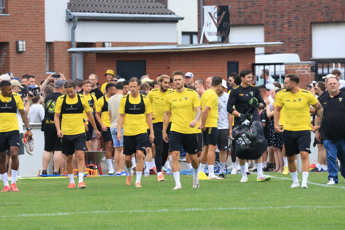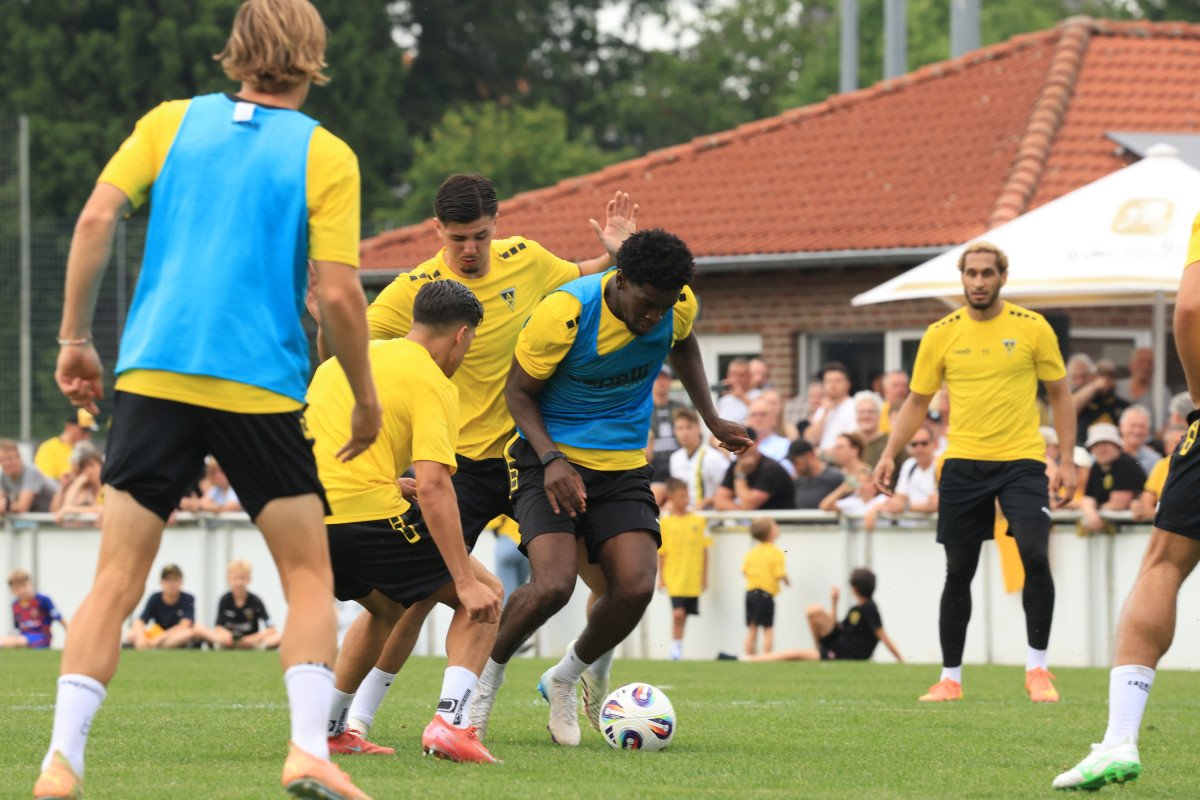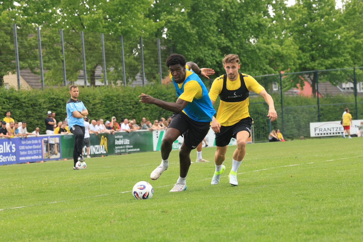 Knapp 1000 Fans der Schwarz-Gelben waren vor Ort und verfolgten das erste Training der Saison 2025/26. Dabei bekamen sie auch direkt die sieben Neuzugänge der Alemannia zu sehen, die erstmals im Vereinstrikot auf dem Platz standen und sich dem Publikum präsentierten - was auch die Neuzugänge freute: "Es war für uns ein guter Einstieg in das Training, die Übungen haben Spaß gemacht und es war einfach toll, vor so vielen Fans zu trainieren", sagte Otschie Wriedt.