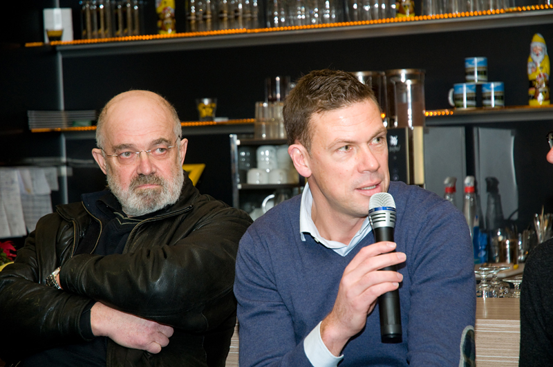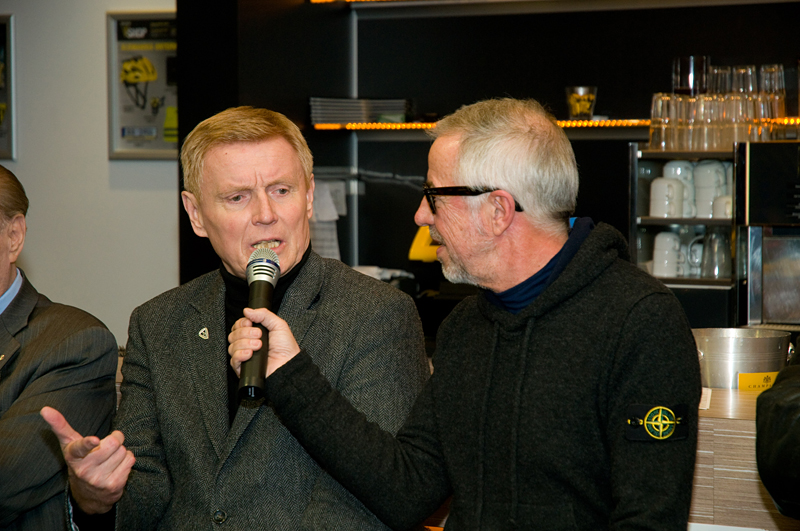 Im gleichen Jahr wurde im Übrigen das jüngste Mitglied der Jahrhundertelf geboren. Die Rede ist natürlich von Erik Meijer. Alemannias Sportdirektor spannte den Bogen am Abend zurück in die Gegenwart. Stand er vor einigen Jahren noch in der erfolgreichen Vereinszeit im UEFA-Pokal auf dem Platz, so schaut er sich das Geschehen heute genauestens von der Tribüne aus an. „Viele fragen mich, warum ich während des Spiels nicht auf der Bank beim Team platznehme. Erstens habe ich da oben einen besseren Überblick; zweitens muss nicht noch ein Dritter da unten an der Linie wild herumspringen“, sorgte Meijer mit seiner Andeutung auf das emotionale Trainergespann Peter Hyballa und Eric van der Luer für mächtig gute Stimmung.