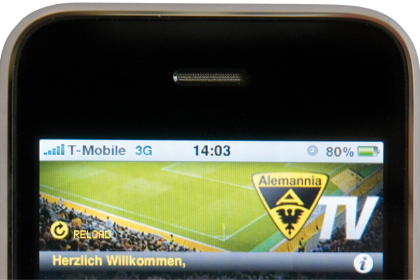 Ab sofort können alle Abonnenten des Alemannia-TV diesen Dienst auch unterwegs nutzen. Voraussetzung dafür ist, dass sie im Besitz eines iPhone sind. Einfach in den App-Store gehen, Alemannia-TV App kostenlos herunterladen und alle Spiele der Schwarz-Gelben ab 20 Minuten nach Spielende sowie viele Berichte rund um die Alemannia anschauen.