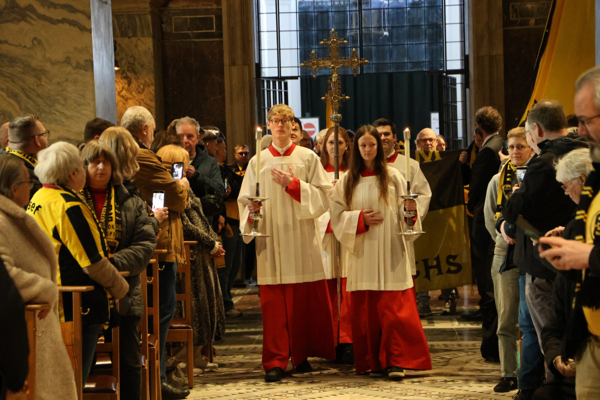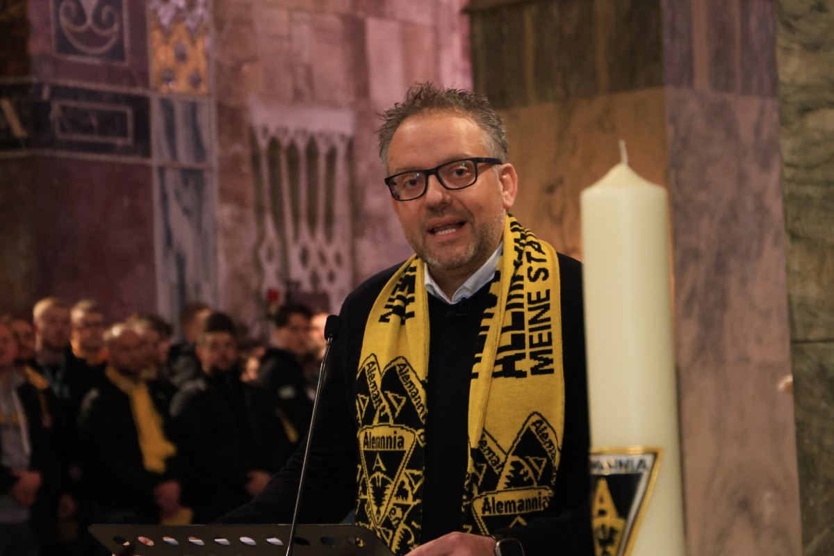 Eröffnet wurde der Gottesdienst von Domprobst Rolf-Peter Cremer. Nach einem ersten gemeinsamen Lied – dem Öcher Halleluja – richtete Alemannia-Präsident Björn Jansen das Wort an die Anwesenden. In seiner Ansprache betonte er, dass die Alemannia zu Aachen gehöre wie der Dom selbst. Der Verein stehe für Vielfalt und Gemeinschaft – getragen von Fans, Mitarbeitenden, ehrenamtlich Engagierten und zahlreichen Abteilungen. Ein Verein für Kinder, Jugendliche und Familien.