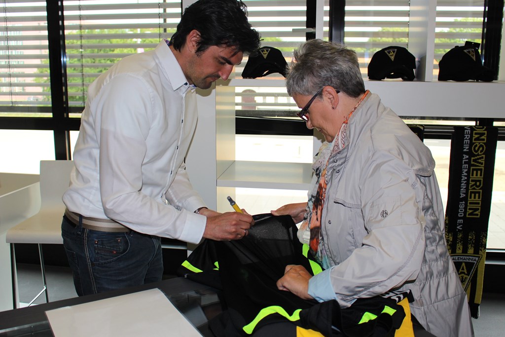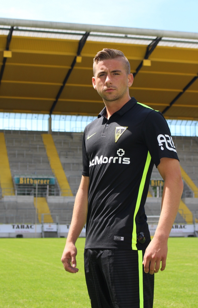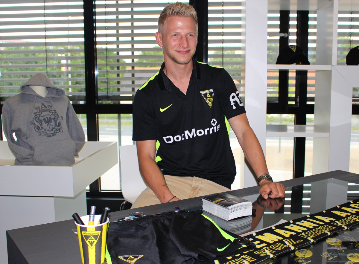 Die Alemannia hat am Donnerstag das neue Nike-Trikot der Saison 2015/16 offiziell vorgestellt. Ein echter Hingucker des modern geschnittenen Jerseys sind die neongelben Streifen auf der Schulter sowie den Seiten.