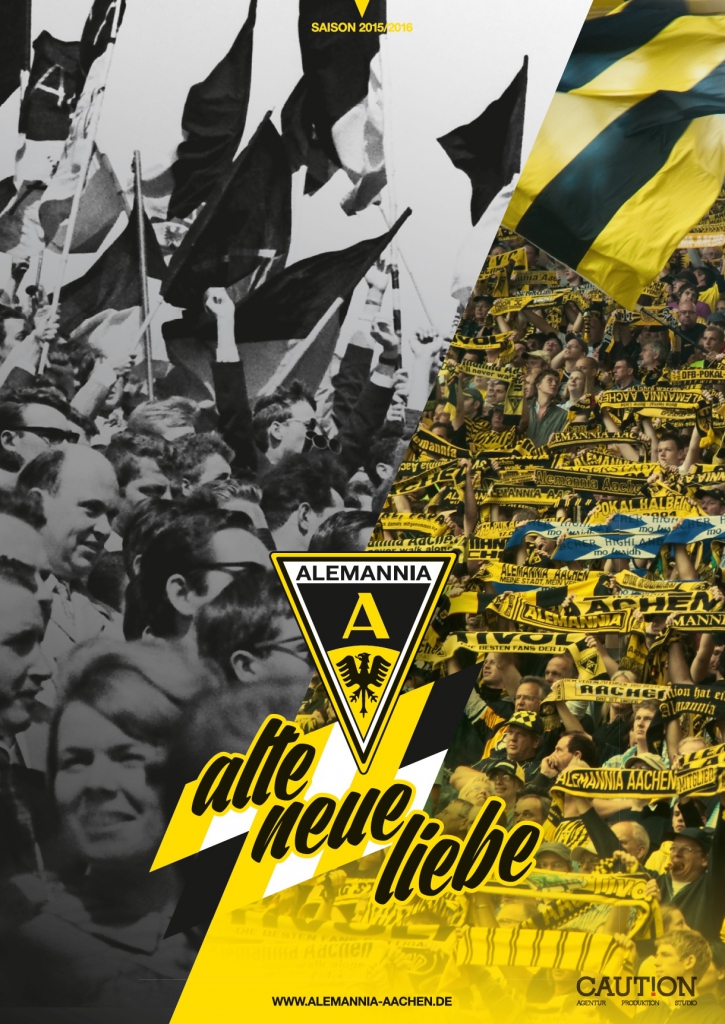 Im Rahmen der großen Saisoneröffnung rund um den Tivoli wird die neue Kampagne zur Saison 2015/16 offiziell vorgestellt: Die Alemannia startet mit dem Claim „Alte Neue Liebe“ in die Spielzeit. Einen ersten Eindruck vom neuen Erscheinungsbild des Klubs bekommen die Fans am Samstag beim Familienfest im Sportpark Soers.