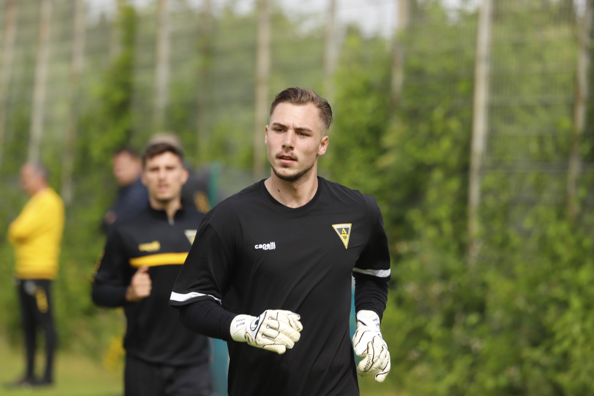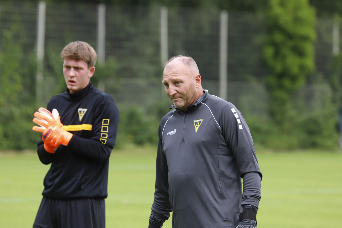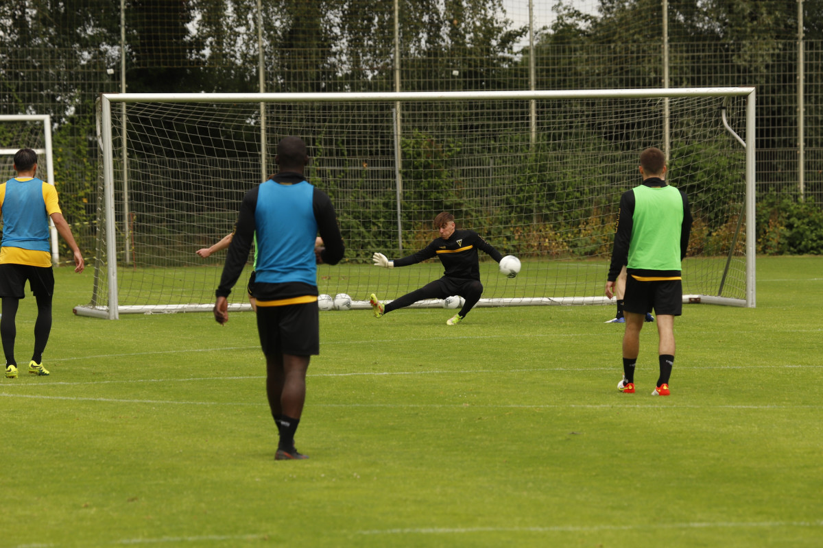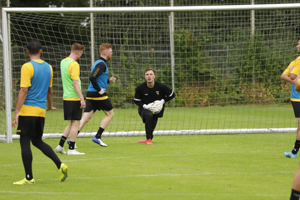 Teil des Torhütertrios, das gemeinsam mit Torwarttrainer Hans Spillmann erste Abläufe durchging, war auch Yannik Bangsow – eine Ausleihe des Keepers von Zweitliga-Aufsteiger Eintracht Braunschweig wird angestrebt, einige letzte Details sind hier noch zu klären.