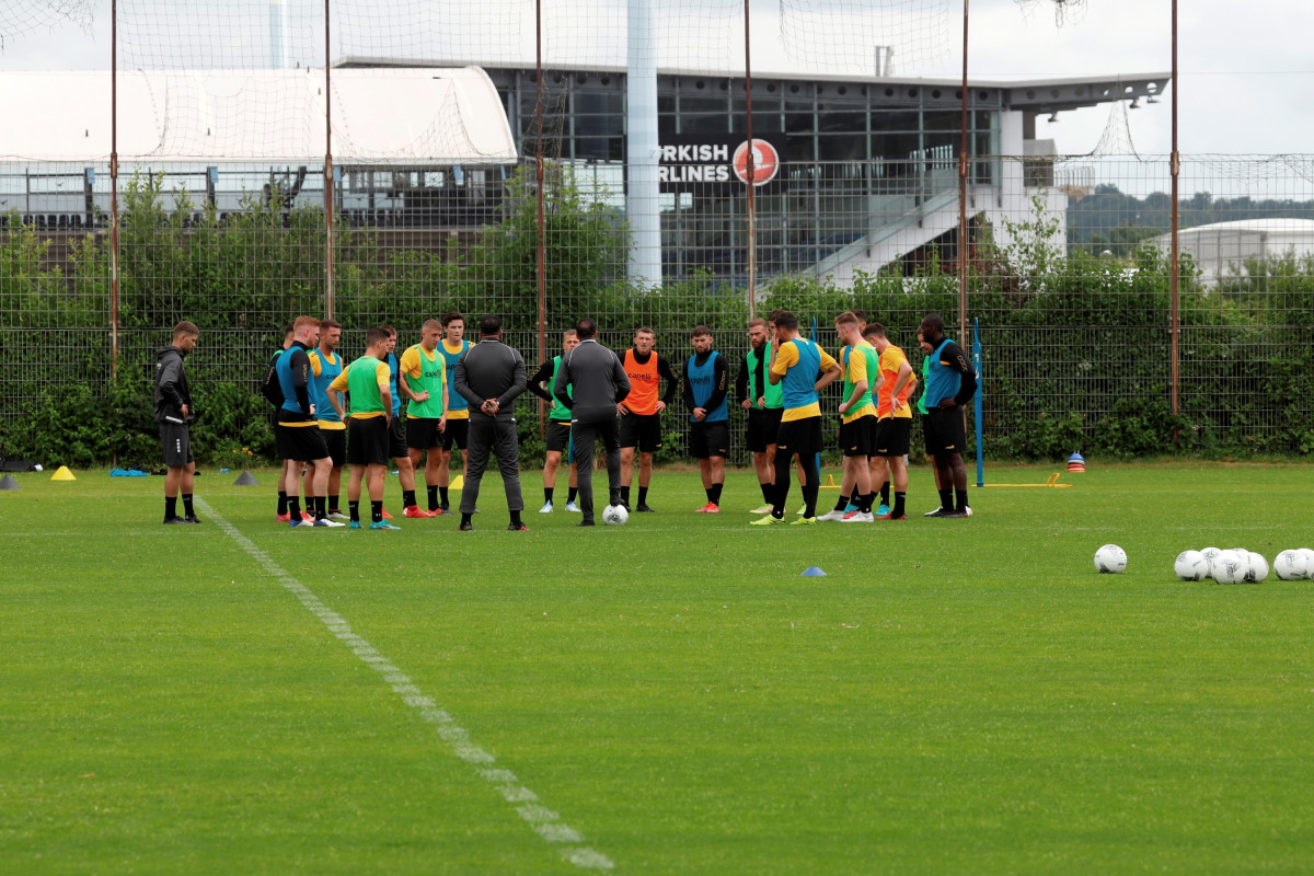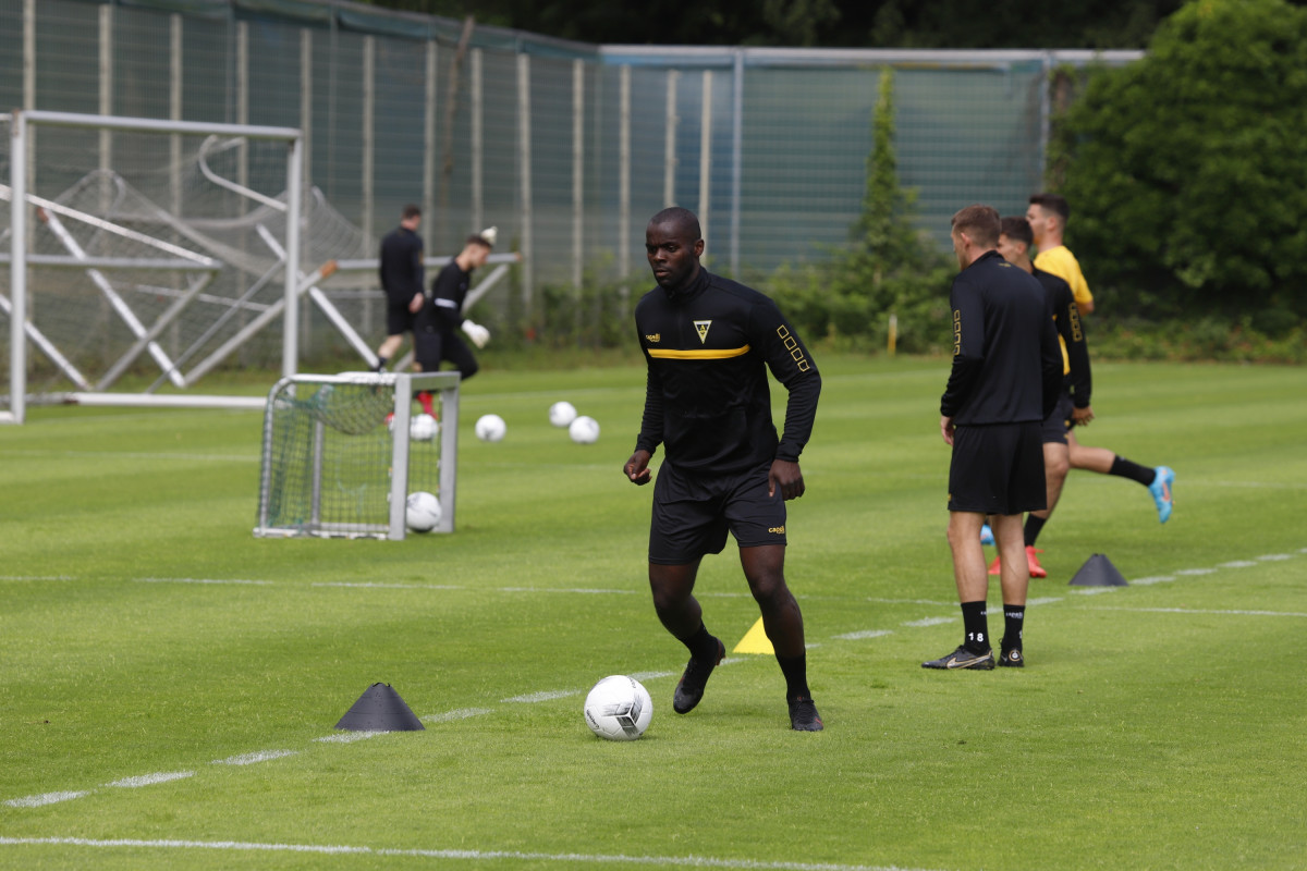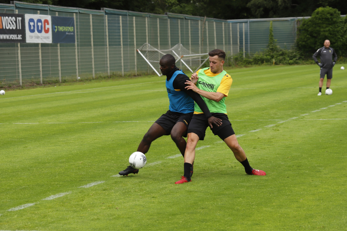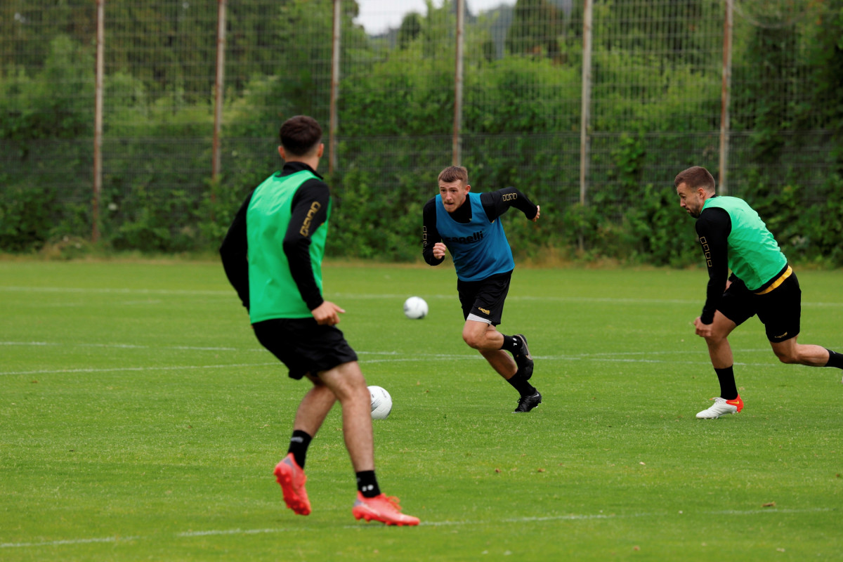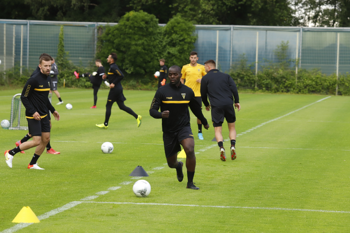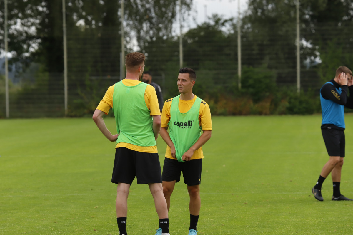 Viele bekannte Gesichter konnten die rund 150 Zaungäste unter den Kilic-Schützlingen ausmachen – neben Jannik Mause, Franko Uzelac, Jannis Held und Co. präsentierten sich dann auch die bis dato fünf extern verpflichteten Neuzugänge zum ersten Mal dem schwarz-gelben Publikum. Wie ihre Teamkollegen zogen Marcel Johnen, Pepijn Schlösser, David Sauerland, Elsamed Ramaj und Exaucé Andzouana bei der ersten Einheit konzentriert mit. Nach rund 90 Minuten voller Koordinations- und Lauftraining sowie Übungen mit Ball hatten es die Akteure auf dem Rasen bereits wieder geschafft – bis es dann am Nachmittag zur zweiten Einheit auf den Platz geht.