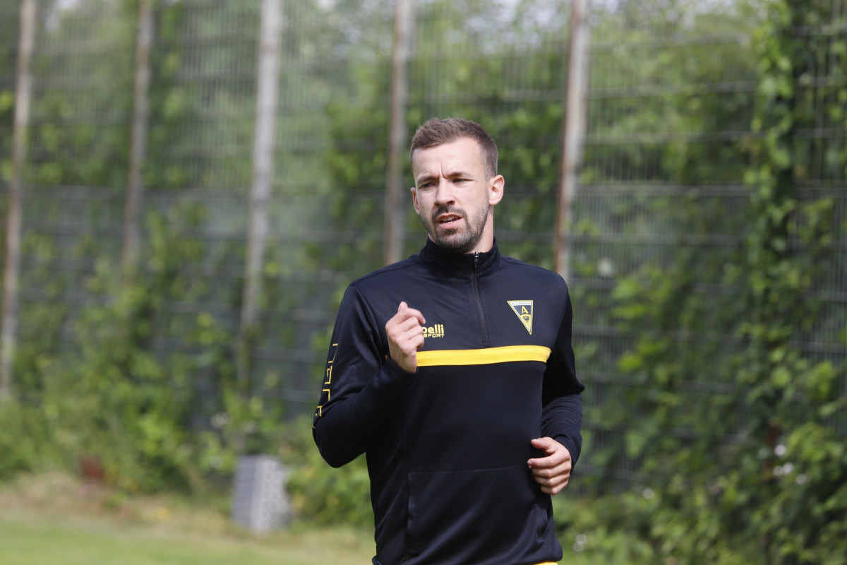 Individuell fit hält sich aktuell noch Abwehrmann Alexander Heinze. Der Innenverteidiger drehte nach seiner Schulteroperation während des ersten Trainings fleißig Runden um den Platz.