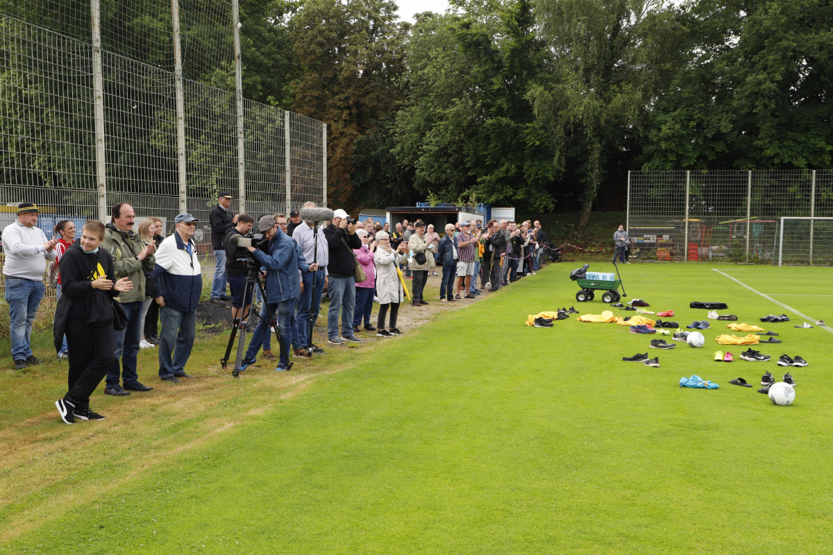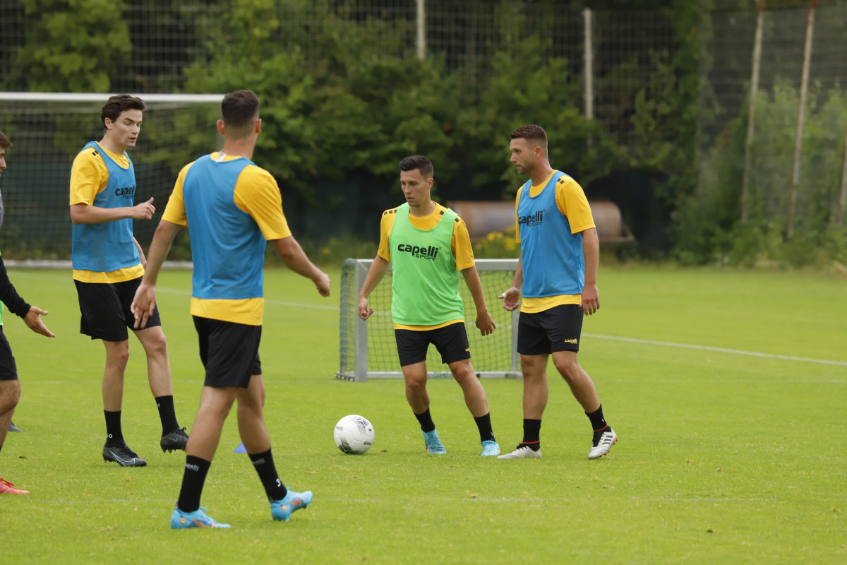 Pünktlich um 10 Uhr spielte dann auch das Wetter wieder mit – der morgendliche Regen hatte sich rechtzeitig zur ersten Mannschaftsbesprechung der neuen Saison auf dem Trainingsplatz „Sevilla“ wieder verzogen. Bei dann nur noch bewölktem Himmel nahmen die 19 Feldspieler und drei Torhüter, die Alemannia-Coach Fuat Kilic zum Trainingsauftakt 2022/23 um sich geschart hatte, ihre Arbeit auf.
