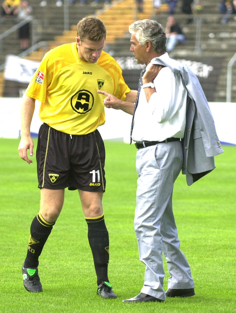 Jörg Berger trainierte die Schwarz-Gelben von Oktober 2001 bis 2004. Als Nachfolger von Eugen Hach schaffte er in der Saison 2001/2002 trotz widriger Umstände den Klassenerhalt. In der folgenden Spielzeit führte er die Alemannia überraschend auf den 6. Tabellenplatz. 2003/2004 verpasste er mit der Alemannia den Aufstieg erst am letzten Spieltag und führte die Mannschaft ins Pokalfinale gegen Werder Bremen.