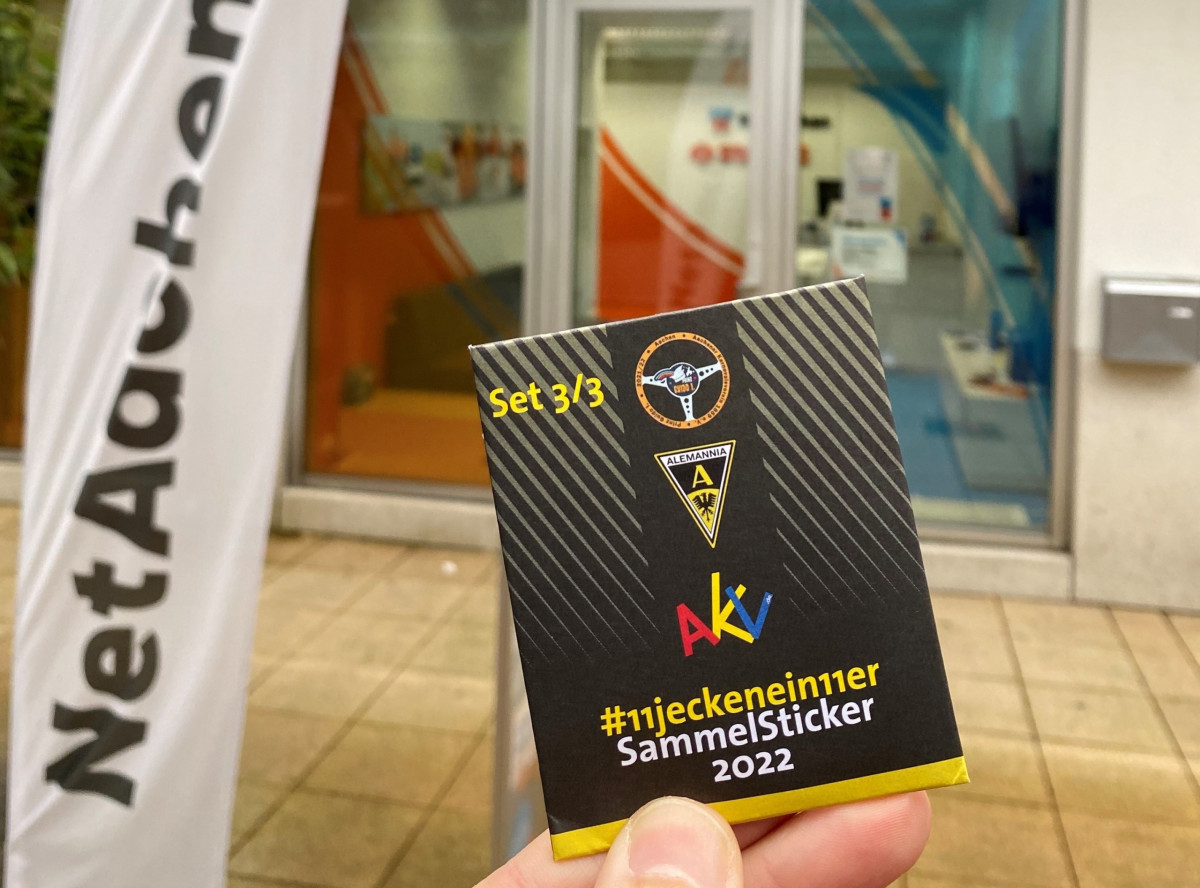 Nachdem die Alemannia und der Aachener Karnevalsverein (AKV) bereits im November mit einem gemeinsam entworfenen Karnevalstrikot für Aufmerksamkeit sorgten, erfolgte an diesem Montag der nächste Streich: Ab sofort ist das AKV-Sticker-Sammelalbum im Umlauf. Ins Leben gerufen vom AKV-Elferrat unter der Federführung von Elferratsmitglied David Lulley, wurde das Album in einer Stückzahl von 1500 produziert und ist – mitsamt den dazugehörigen Stickertütchen – von nun an ausschließlich an den Verkaufsstellen im Alemannia-Fan-Shop am Tivoli, beim Wienand Ausstatter an der Hotmannspief und im NetAachen-Shop in der Innenstadt (Marienbongard) kostenlos zu erhalten. Gesammelt werden kann nicht nur der komplette Regionalliga-Kader der Alemannia, auch der Elferrat und Prinz Guido I. inklusive Hofstaat sind auf den Klebebildchen vertreten – natürlich alle im Karnevalstrikot.