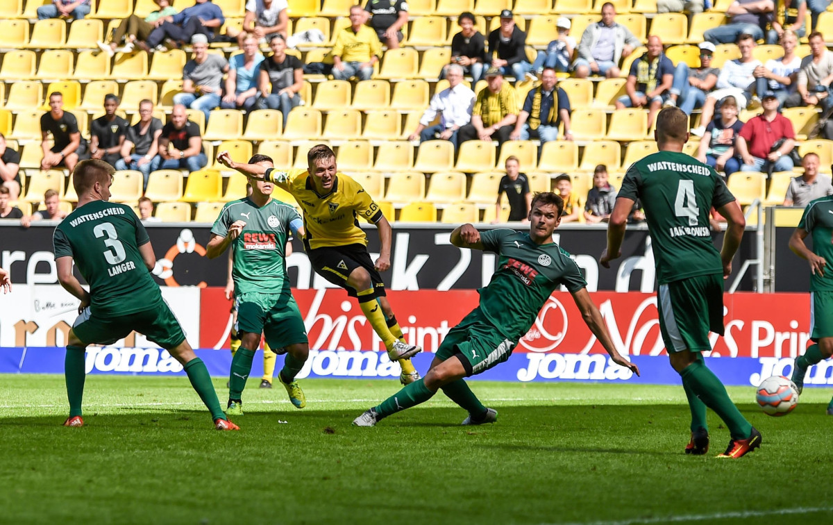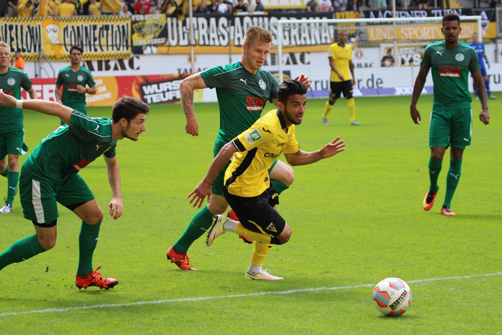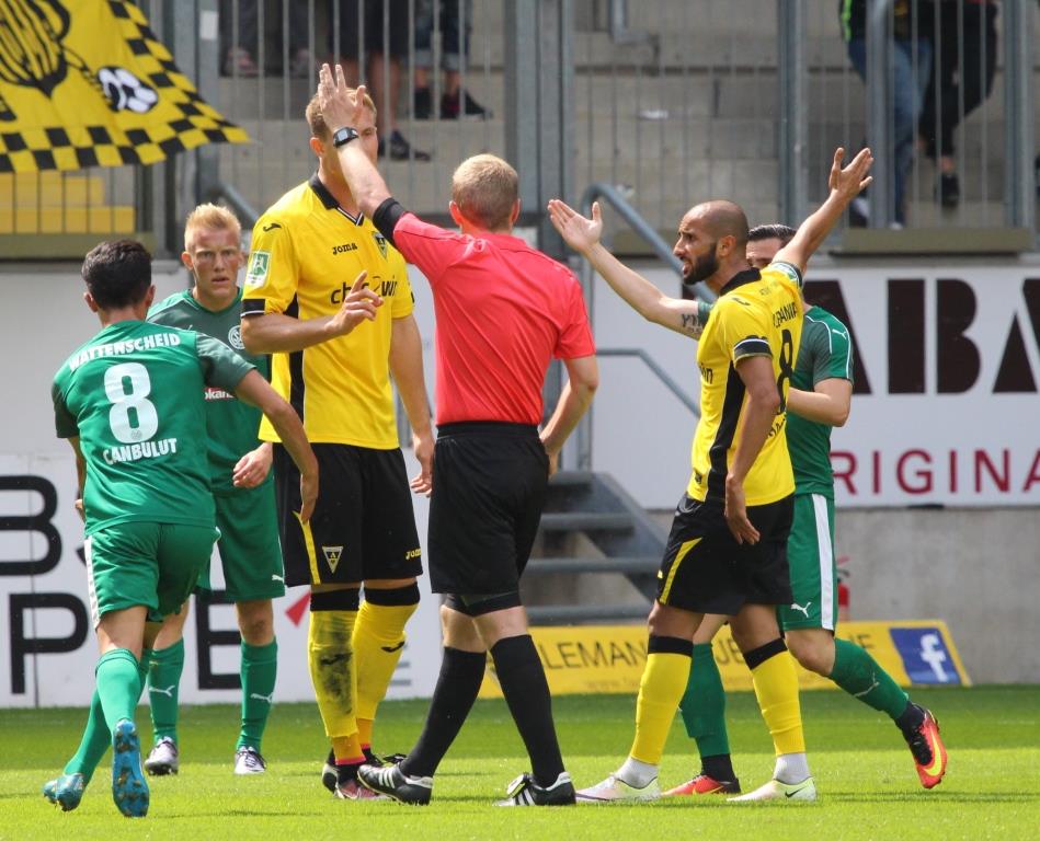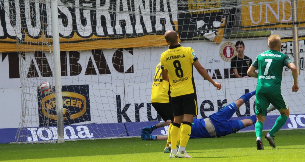 Die Alemannia musste sich am 2. Spieltag der Regionalliga West erstmals geschlagen geben. Gegen die SG Wattenscheid 09 unterlagen die Schwarz-Gelben vor 6.800 Zuschauern auf dem Tivoli durch einen frühen Gegentreffer mit 0:1 (0:1). Dominik Ernst sah nach einer vermeintlichen Notbremse unmittelbar vor dem Pausenpfiff die Rote Karte.