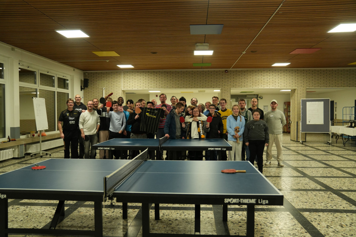 Im Rahmen des WDR2-Weihnachtswunders wurde vor Ort ein gemeinsames Tischtennisturnier für Bewohnerinnen, Bewohner und Mitarbeitende veranstaltet und mittendrin waren die Sportler der Schwarz-Gelben. Im beliebten Rundlauf-Modus lieferten sich zahlreiche Teilnehmende spannende Ballwechsel und spielten mit großer Begeisterung den Turnier-Champion aus.