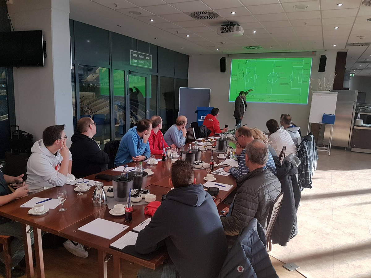 Im Mittelpunkt des Treffens, an dem auch die Behindertenbeauftragten Petra und Uwe Köhnen teilnahmen, stand der Austausch über die Entwicklung in den jeweiligen Stadien. Darüber hinaus gab es eine kurze Schulung inklusive Übung im Bereich der räumlichen Verortung auf dem Spielfeld. Abgerundet wurde der Tag mit einer Führung durch die Arena.