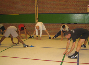 „Sport im Verein ist eine gute Möglichkeit, sich wieder in die Gesellschaft zu integrieren. Die Jugendlichen müssen dort Disziplin zeigen, sich sozial anpassen und es ist eine gute Möglichkeit, Selbstvertrauen zu entwickeln“, berichtete Willi Kroh, stellvertretender Anstaltsleiter, beim Rundgang durch das Gefängnis. 15 bis 20 Jugendliche gehören in der JVA Heinsberg dem sogenannten DFB-Team an. Die Jugendlichen haben sich durch ihr positives Verhalten für diese Mannschaft qualifiziert und trainieren nun über das normale Sportangebot hinaus mindestens einmal pro Woche zusammen. Sie erhalten darüber hinaus die Möglichkeit, während der Freigänge aber auch nach ihrer Entlassung bei einem kooperierenden Fußballverein am Trainings- und Spielbetrieb teilzunehmen. Zudem hilft die Handwerkskammer, die sich ebenfalls an dem Projekt beteiligt, den Jugendlichen nach ihrer Entlassung bei der Suche nach einem Ausbildungsplatz.