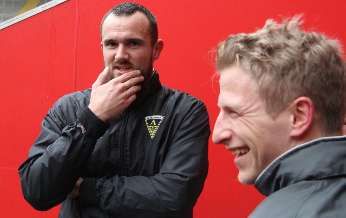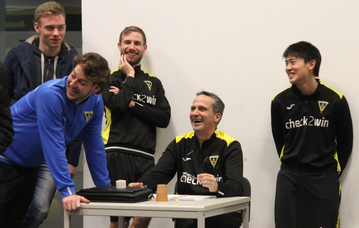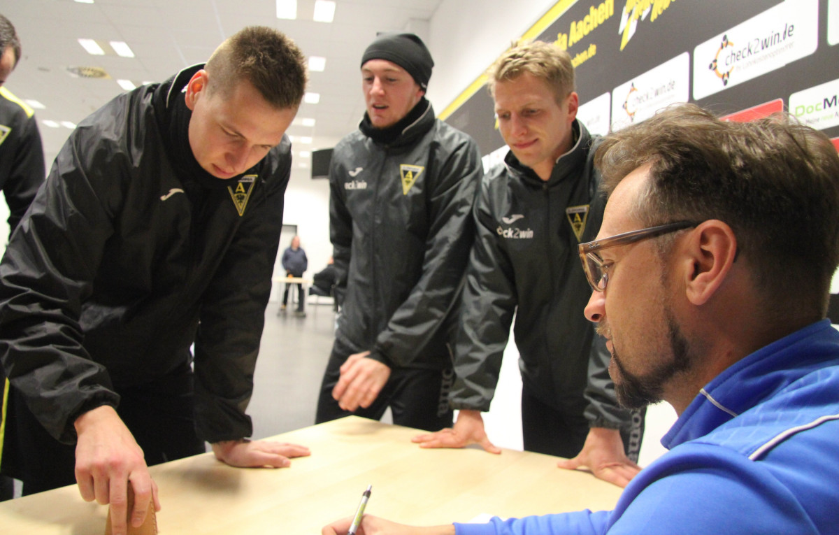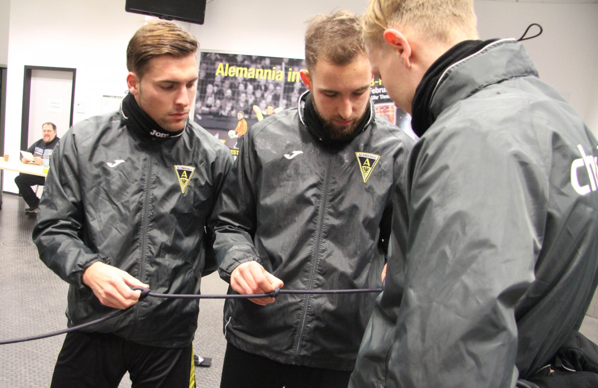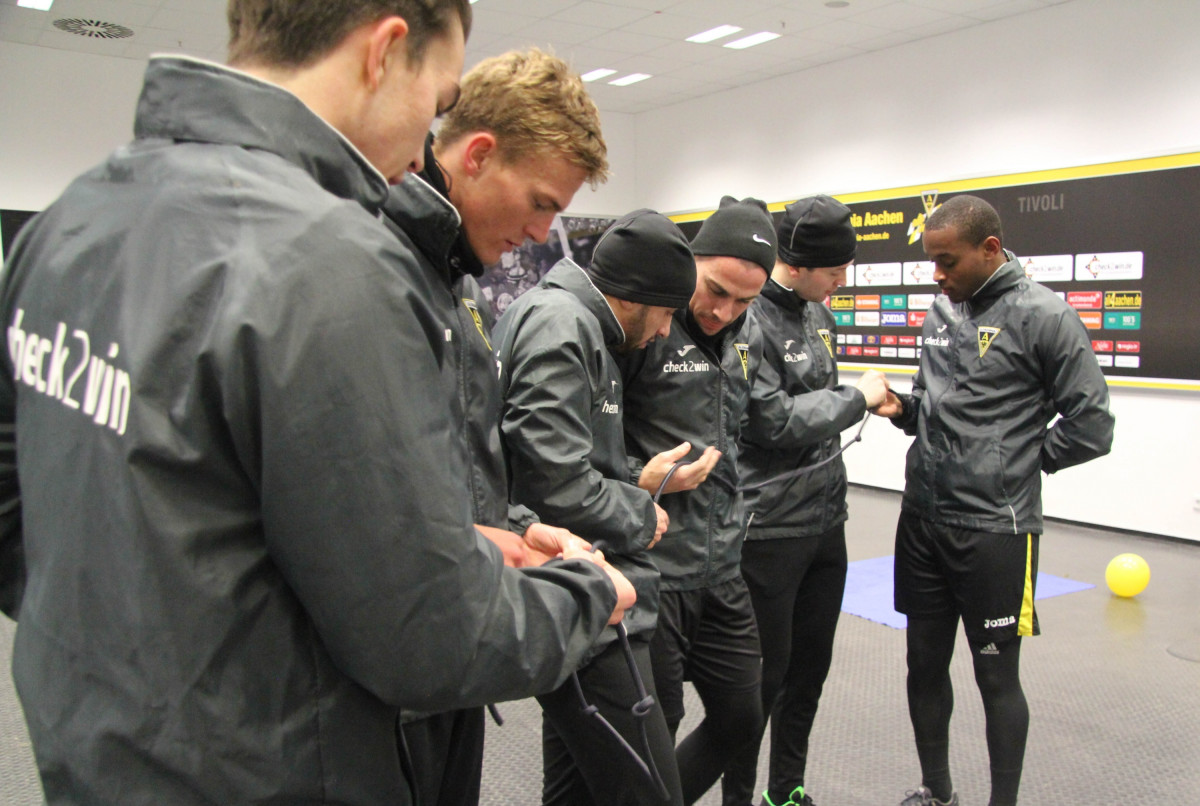 Unter welchem Trainer gelang Alemannia Aachen 2004 der Einzug in das DFB-Pokalfinale? Das ist eine Frage, die Alemannias Spieler während des Trainings beantworten mussten. Fuat Kilic stellte aber nicht nur das Wissen rund um den Aachener Traditionsklub auf den Prüfstand. Insgesamt hundert Fragen zur Alemannia, zum Sportgeschehen und zur Allgemeinbildung hatte der Coach vorbereitet.
