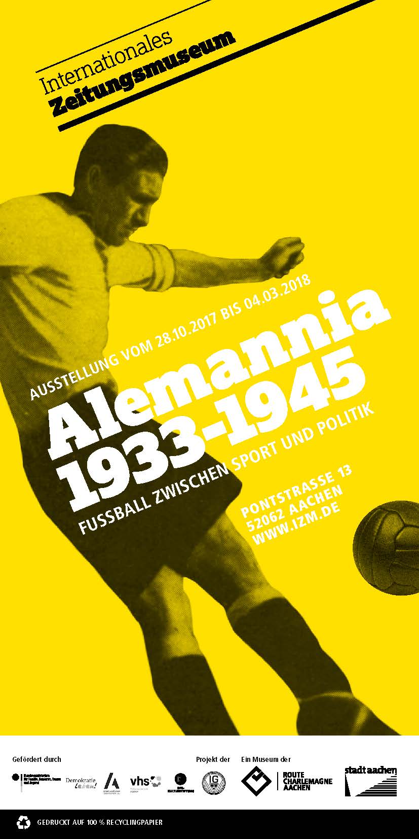 Was war Alemannia Aachen in dieser Zeit für ein Verein? Wie wirkte sich die nationalsozialistische Politik auf die Alemannia und das Vereinsleben aus? Wie agierten der Verein und seine Mitglieder im Spannungsfeld zwischen Politik und Sport? Was geschah mit den jüdischen Vereinsmitgliedern? Entlang der Lebenswege von Reinhold Münzenberg und Max Salomon entfaltet die Ausstellung, die in Zusammenarbeit mit der Fan-IG der Alemannia im Internationalen Zeitungsmuseum gezeigt wird, in Schlaglichtern die Atmosphäre, die Ereignisse und Entwicklungen bei Alemannia Aachen von 1933 bis 1945. Die Ausstellung stützt sich vor allem auf die Vereinszeitung, zahlreiche historische Quellen und Fotos.