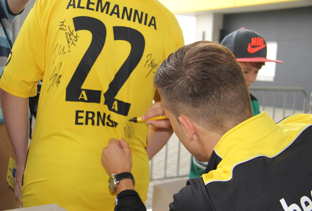Die Alemannia bietet wie in den Vorjahren ein ausgewähltes Fanartikelsortiment auf dem Weihnachtsmarkt in Alsdorf an. Am Mittwoch, 30. November, gibt es dann die Möglichkeit, sich ab 18.00 Uhr Autogramme von den Spielern Dominik Ernst, Tobias Haitz und Philip Sprint zu sichern.