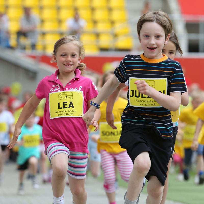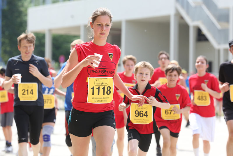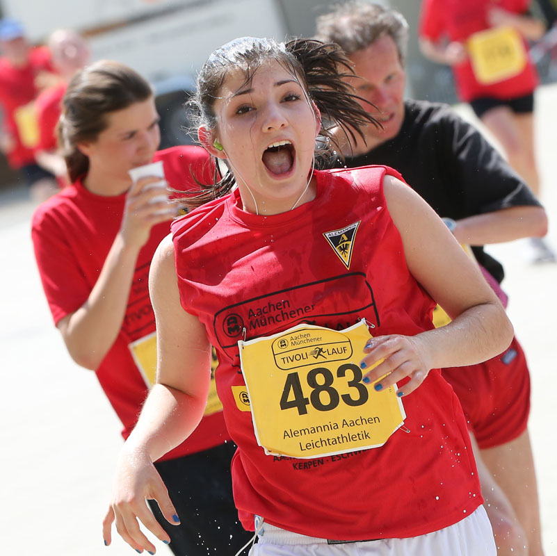Schwitzen statt abkühlen: Während sich der strahlende Sonnenschein am diesjährigen Pfingstsonntag bestens zum Gang in den Park oder ins Freibad geeignet hätte, suchten knapp 1.300 Sportbegeisterte den Weg in die Soers. Mit gutem Grund: Schließlich stand dort die dritte Auflage des AachenMünchener Tivoli-Laufs in den Startlöchern. Eines durfte am Ende des langen Lauf-Tages rund um Tivoli und Reitstadion des ALRV getrost festgestellt werden: Sowohl für die aktiven Teilnehmer als auch für die zahlreichen Zuschauer abseits der Laufstrecke hatte sich der Besuch vollkommen gelohnt.