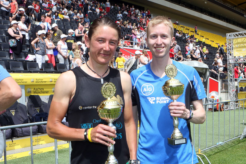 Das lag nicht nur an den spannenden Wettkämpfen, die sich die Läufer in den verschiedensten Wettbewerben untereinander leisteten. Besonders die Atmosphäre im Stadion der Alemannia beeindruckte Groß und Klein. Beim Bambini- und Schüler-Lauf passierte der Nachwuchs ebenso unter tosendem Applaus seitens der Rängen die Ziellinie wie die etwas Erfahreneren unter den Läufern beim Jedermann-Lauf und Halbmarathon. „Den Teilnehmerrekord des vergangenen Jahres konnten wie dieses Mal zwar nicht toppen, trotzdem sind wir sehr zufrieden mit der dritten Auflage. Es ist nicht selbstverständlich, dass so viele Besucher an einem Pfingstwochenende den Weg zu diesem Lauf finden“, freute sich Rüdiger Coerdt, Leiter der Leichtathletik-Abteilung der Alemannia.