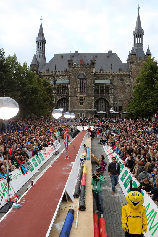 Vor 5.000 Zuschauern auf dem Aachener Katschhof hatte das hochklassig besetzte Athletenfeld bereits den ganzen Abend lang Leichtathletik der Extra-Klasse gezeigt.