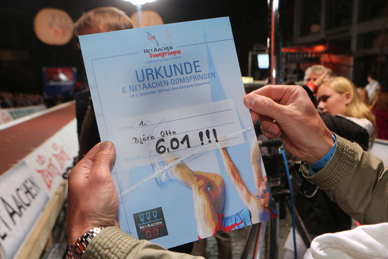 Auch zum Ende der Saison bewies der Olympiazweite Björn Otto, dass in diesem Jahr kaum ein Weg an ihm vorbeiführte. Mit 6,01 Metern siegte er am Mittwoch, 5. September, souverän bei der achten Ausgabe des NetAachen-Domspringen und stellte nicht nur eine neue Weltjahresbestleistung, sondern auch einen neuen Deutschen Rekord auf. Seit 13 Jahren ist er damit der erste Deutsche, der wieder über sechs Meter gesprungen ist. Zuletzt war dies Tim Lobinger 1999 gelungen.