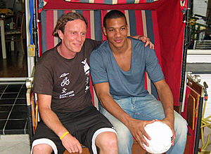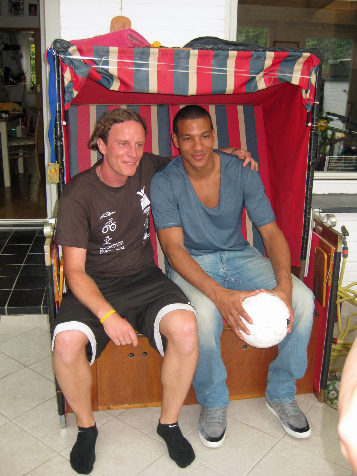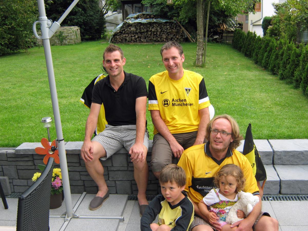 Wie Waterman war auch Abwehrspieler Thomas Stehle am Montagabend unterwegs. Er besuchte den 9999. Dauerkartenkäufer dieser Saison. Roman Thürwächter erwartete den dienstältesten Alemannia-Profi zusammen mit seiner Familie und Freunden im heimischen Garten. Bei einem gemütlichen Plausch erzählte Stehle vom Leben eines Fußballprofis und signierte natürlich fleißig alle schwarz-gelben Fanartikel.