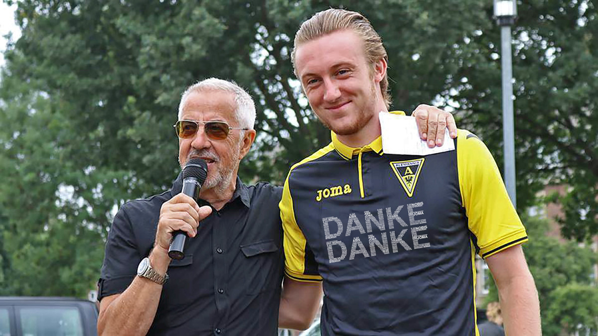 „DANKE, DANKE“ sagt Alemannia damit den Sponsoren und Förderern. „DANKE, DANKE“ sagt die Mannschaft den vielen Fans und „DANKE, DANKE“ ist schließlich der von unserem Stadionsprecher Robert Moonen geprägte Begriff für eine erfolgreiche Spielsituation.