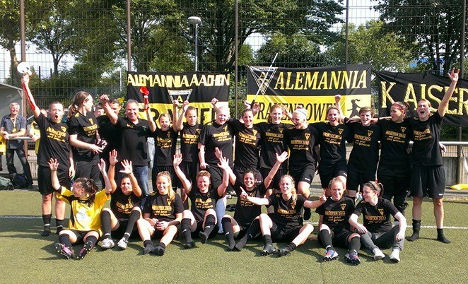 Die 1. Frauenfußballmannschaft der Alemannia hat am Sonntag, 1. Juni, den Aufstieg in die 2. Bundesliga klargemacht. Einen Spieltag vor Saisonende reichte den Damen von Trainer Manuel Ortiz-Gonzalez ein 1:1-Unentschieden bei der Zweitvertretung des VfL Bochum. Mit 54 Zählern liegen die Schwarz-Gelben in der Tabelle vor Bayer Leverkusen II, MSV Duisburg II und Bochum II, die den zweiten Aufsteiger unter sich ausmachen.