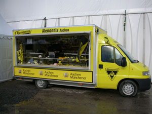 Am Sonntag, 11. Juni, wird das Alemannia-Fanmobil in Düren stehen. Im Rahmen der Dürener WM-Tage und des Verkaufsoffenen Sonntags ist das Mobil mit einer breiten Palette schwarz-gelber Fanartikel von 14 bis 20 Uhr am Kaiserplatz vertreten.