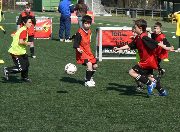Denn Jahr für Jahr treten die Nachwuchskicker der Aachener Grundschulen nicht nur gerne im 4x4-Turnier an, sondern erleben an diesen Fußball-Nachmittagen immer auch ein Stück Alemannia hautnah. Nicht selten kommen die Profis zum Autogramme schreiben vorbei und sorgen damit einmal mehr für gute Stimmung unter den Teilnehmern. So auch zur fünften Auflage des Schulturniers. Da am vergangenen Donnerstag das Wetter nicht mitspielen wollte, musste die erste Vorrunde des Turniers leider kurzfristig nach hinten verlegt werden. So fanden sich die insgesamt 124 Schülerinnen und Schüler der ersten Vorrunde am Montag auf dem Kunstrasenplatz des Nachwuchsleistungszentrums der Alemannia ein.