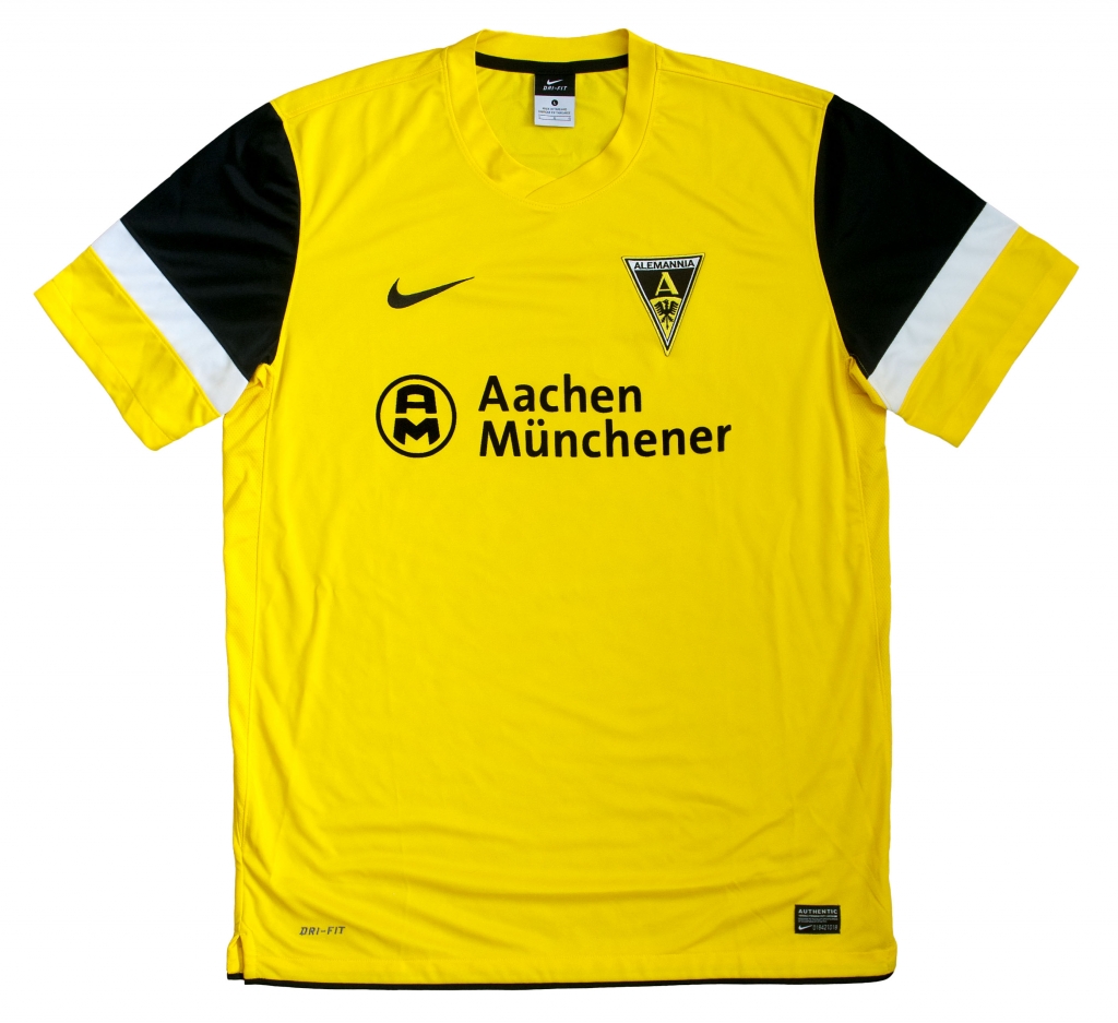 Schon vor Ende der Saison kann die Alemannia in diesem Jahr das Trikot für die neue Spielzeit präsentieren. Der neue Dress ist ab Samstag in den Alemannia-Shops im Tivoli und in der Pontstraße sowie im Internet unter www.alemannia-shop.de erhältlich. Die Grundfarbe des Trikots ist gelb, an den Ärmeln befinden sich jeweils einen schwarzer und weißer Einsatz. Außerdem ist es gekennzeichnet von einem klassischen Rundhalsausschnitt. Die Preise für die Trikots bleiben unverändert. So kosten Kindertrikots 54,99 Euro, für Erwachsene sind es 59,99 Euro. Da es sich nur um eine Vorab-Lieferung handelt, sind derzeit allerdings nur Erwachsenen-Größen erhältlich. Wer das neue Trikot gerne in Aktion bewundert möchte, hat schon am Sonntag Gelegenheit dazu. Denn zum ersten Mal spielt auch die Mannschaft beim letzten Spiel der Saison gegen Arminia Bielefeld schon in den neuen Trikots. Und für alle schnell Entschlossenen hält die Alemannia noch ein besonderes Geschenk bereit. Die ersten 1.111 Trikotkäufer erhalten eine limitierte Tasche in Form des neuen Trikots gratis dazu.