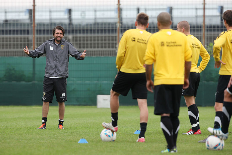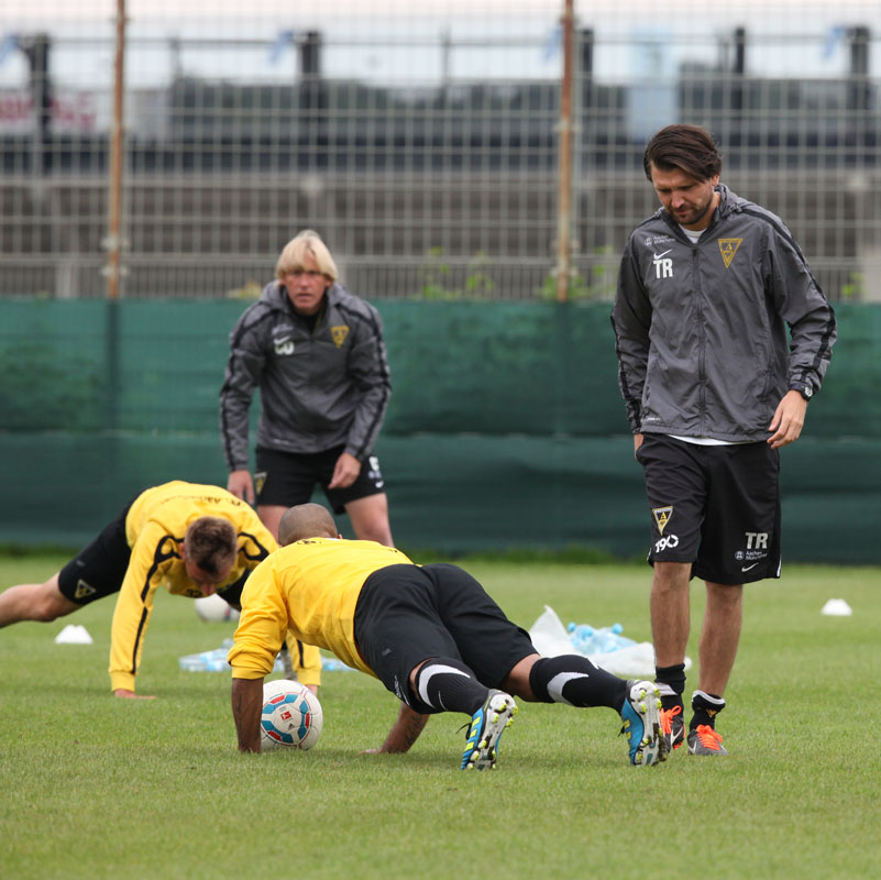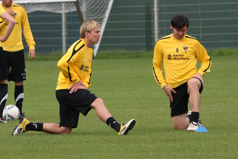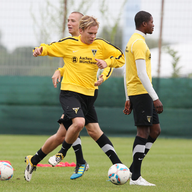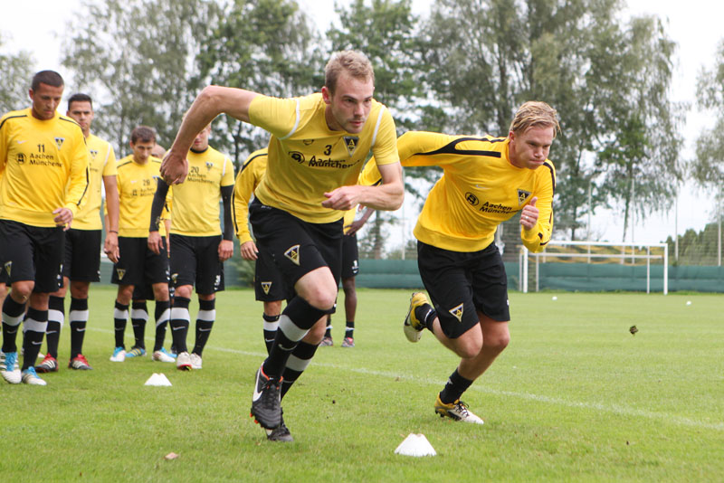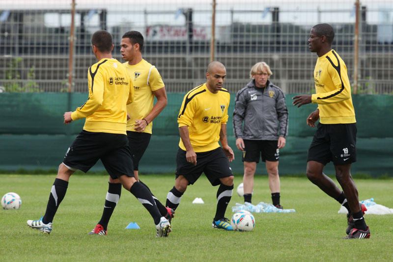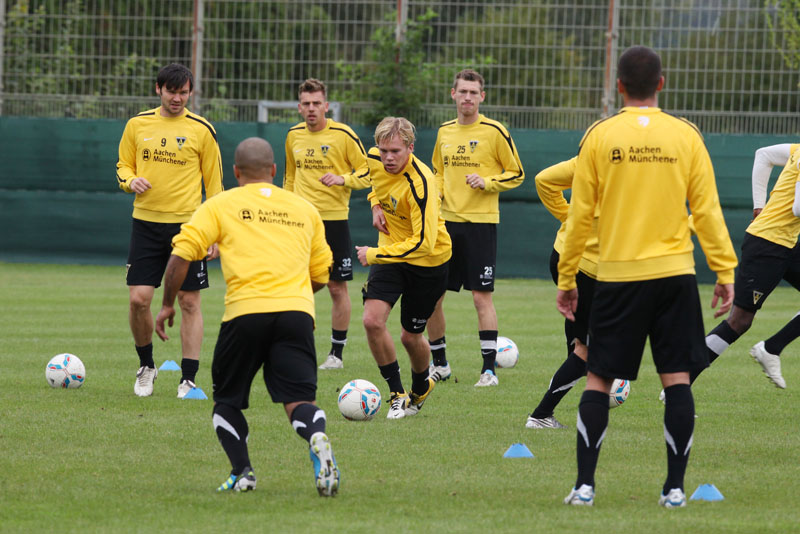 Mit Dennis Grote ist ein weiterer Außenspieler im Training, der auf der linken Seite zuhause ist. „Das ist ein Freundschaftsdienst. Dennis hat angefragt, ob der sich bei uns fit halten kann, da er derzeit keinen Klub hat. Wir machen das gerne, zumal in dieser Woche einige Spieler angeschlagen sind und wir dadurch Platz auf dem Feld haben“, sagt Meijer, dessen Handy weiter auf Dauerbetrieb steht. Bis die Transferliste am Mittwoch schließt, könnte am Tivoli noch etwas passieren.