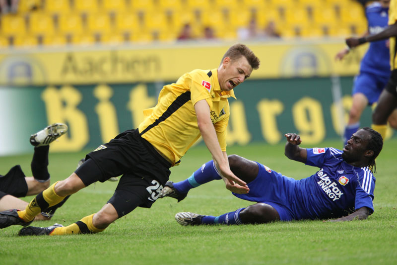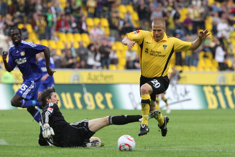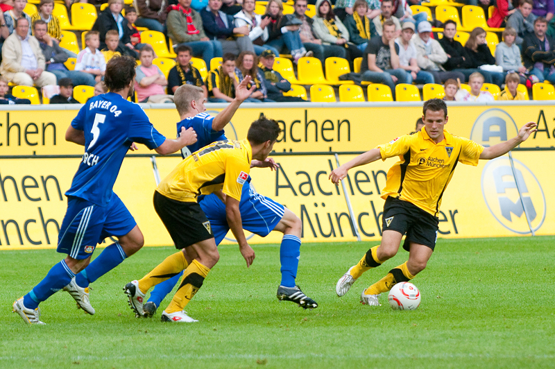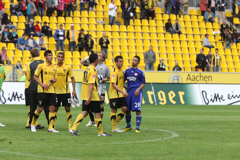 Während Alemannia im Zwei-Minuten-Takt gefährlich vor dem Bayer-Kasten auftauchte, musste die Werkself bis zur 30. Minute auf ihre erste Chance warten. Helmes bekam den Ball auf links zugespielt, verzog allerdings um einige Zentimeter. Auf der Gegenseite erhielten die Jungs vom Tivoli erneut eine große Gelegenheit das längst überfällige 2:0 zu erzielen, doch auch Uludag fehlte das Quäntchen Glück. Zwei Minuten später machte es der Youngster dann aber besser: Ein feiner Pass von Arslan fand Uludag, der zunächst an Keeper Bobel vorbeiging, ehe er sicher zum hochverdienten 2:0 einschob (34.). Nun schien fast alles zu klappen: Die Alemannia führte den Klassenhöheren phasenweise vor und erspielte sich Chance für Chance. Eine dieser Gelegenheiten hätte der eingewechselte Henrik Ojamaa um ein Haar zum 3:0 ausgenutzt, doch Sarpei klärte für Bayer auf der Linie. Den Schlusspunkt einer bärenstarken Leistung, die die schwarz-gelben Anhänger sichtlich begeisterte, markierte erneut der sehr agile Uludag, dessen Distanzschuss Bobel gerade noch zur Ecke klärte.