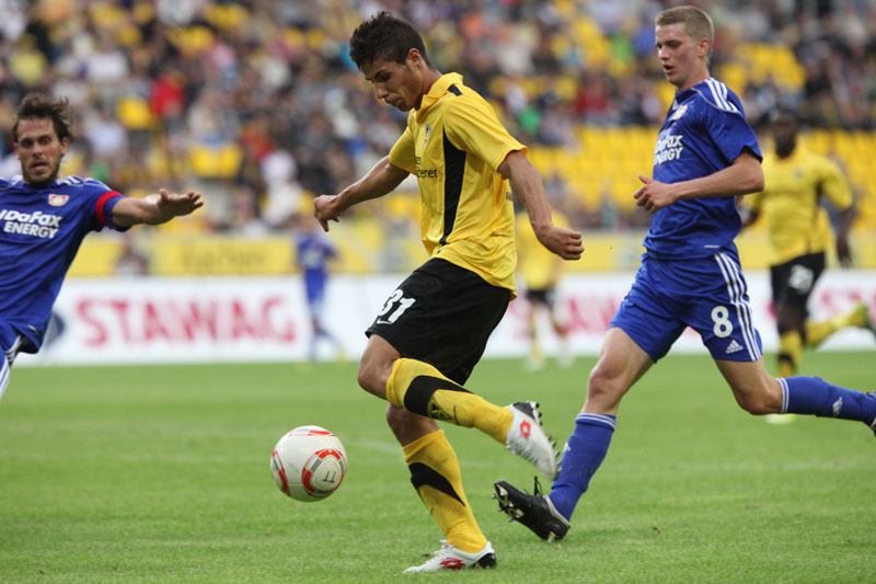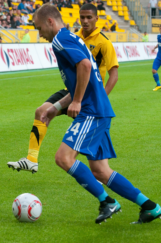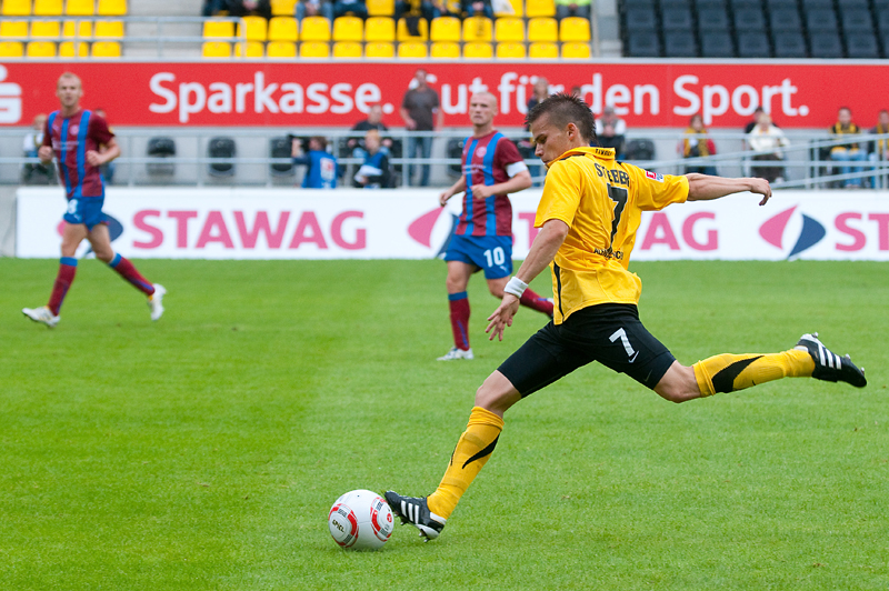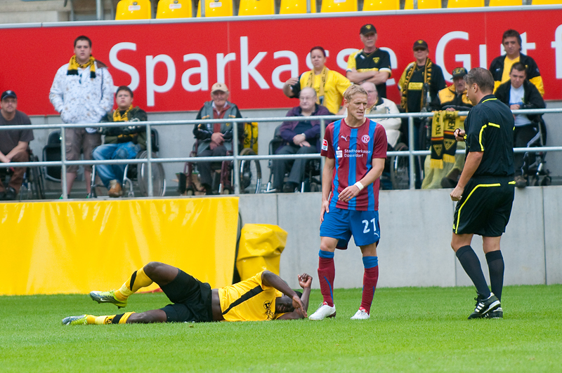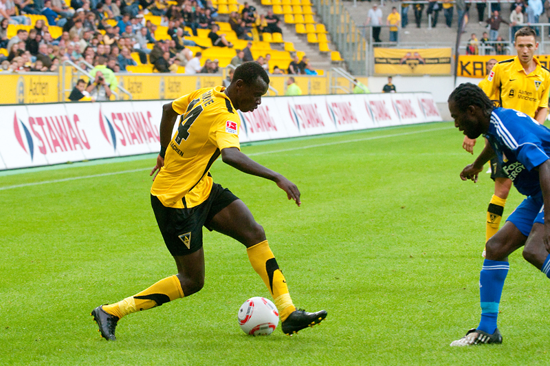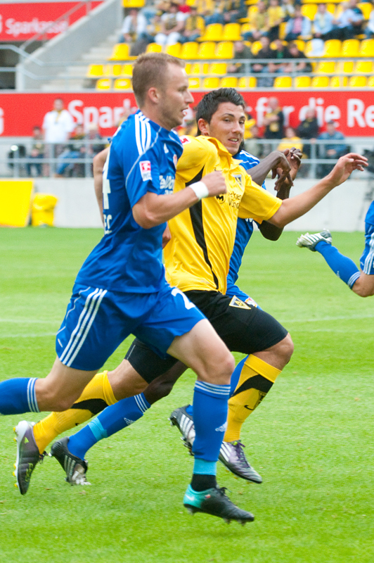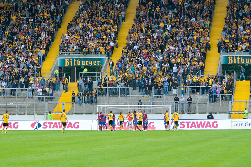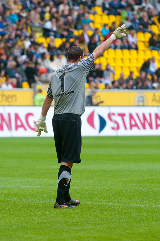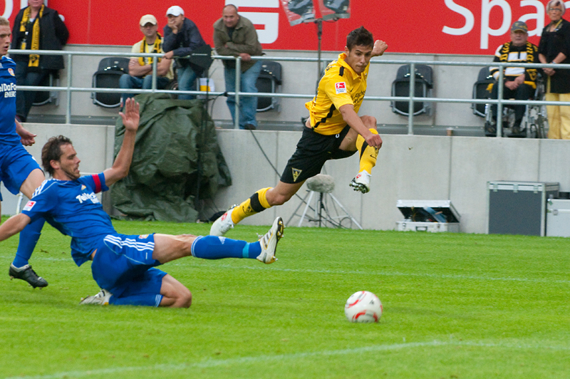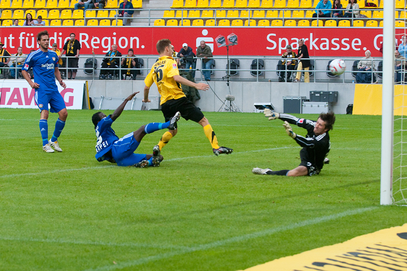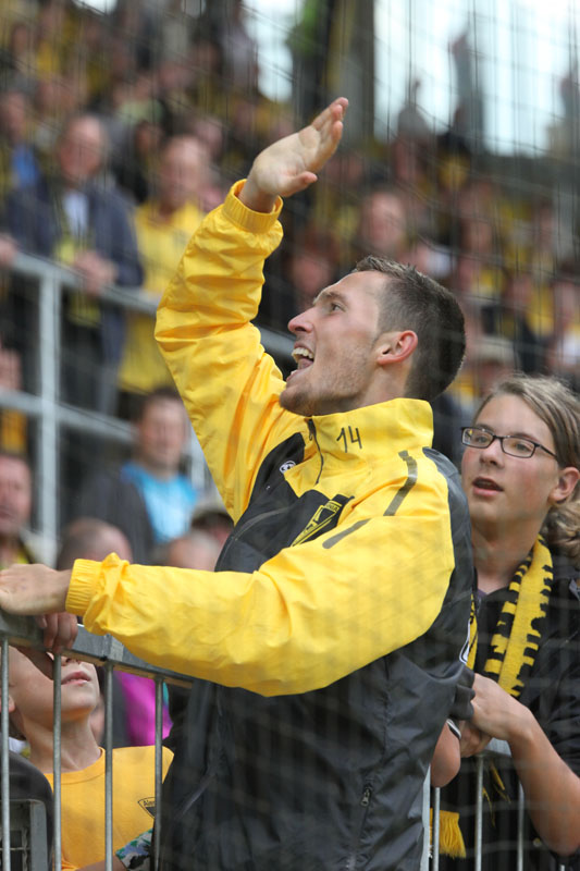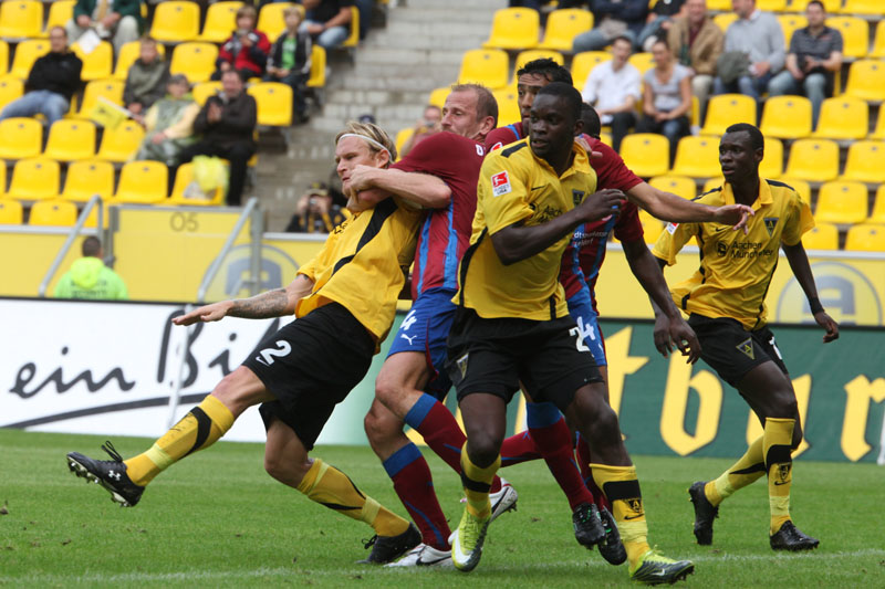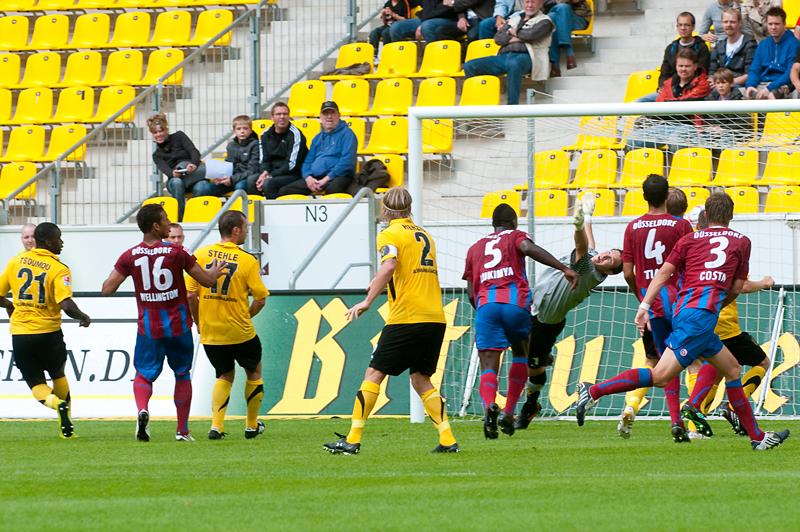 Trotz Unterzahl gaben sich die Gäste aus der Landeshauptstadt nicht mit dem Ergebnis zufrieden. Zunächst versuchte es Zoundi mit einer Direktabnahme (33.), ehe Herzig in letzter Sekunde per Kopf vor dem heraneilenden Wellington klärte und die Kugel unfreiwillig an den rechten Pfosten setze (36.). Den Auftaktsieg ließ sich die Alemannia dann aber nicht mehr nehmen und ging nach ersten 45 überzeugenden Minuten als Sieger vom Feld.