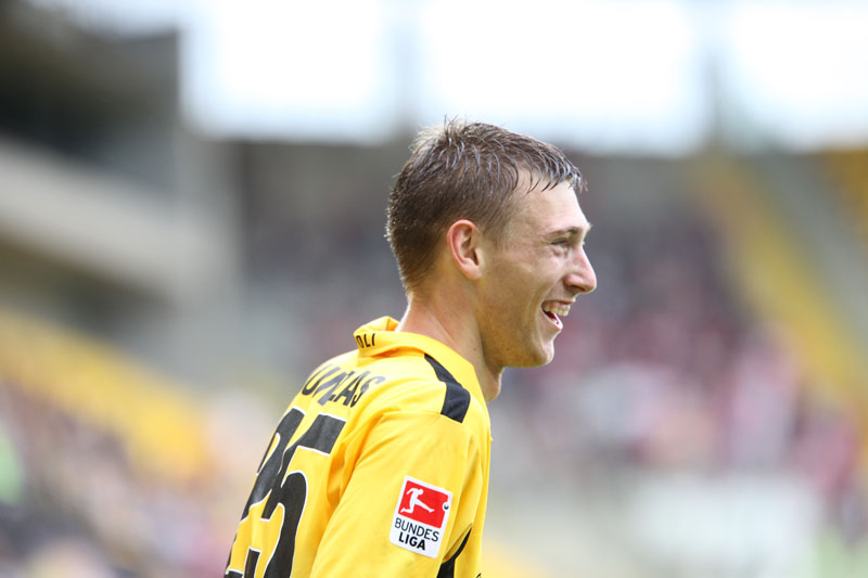 An der optischen Überlegenheit änderte sich auch trotz Rückstand nichts, doch wirklich eingreifen musste Fortunas Keeper Michael Melka nur, als Arturo Vidal es zwei Mal aus der Distanz probierte (25./35.). So sicher Düsseldorfs Nummer Eins bei beiden Aktionen auch wirkte, umso schlechter sah er in der 38. Spielminute aus: Eine scharf hereingegebene Flanke von Renato Augusto erwischte Melka auf dem falschen Fuß, so dass er sich die Kugel unglücklich zum 1:1-Ausgleich ins eigene Netz faustete. Nun drängte die Werkself gegen tief stehende Fortunen auf den Siegtreffer – und sie belohnten sich noch vor dem Schlusspfiff: Mit einem mustergültigen Zuspiel bediente Kießling Sturmpartner Helmes, der sich nicht zweimal bitten ließ und zum 2:1-Sieg einschob (38.).