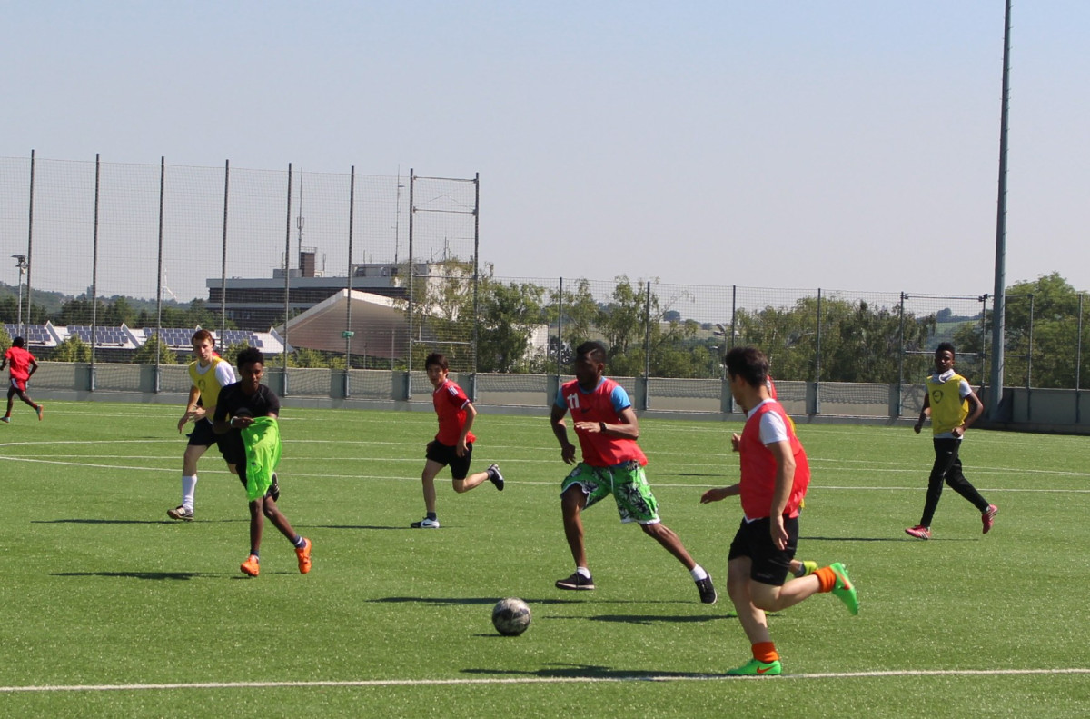 Die Stadt Aachen ist in den letzten Jahren neue Heimat für viele Hundert junge Menschen geworden, die aus verschiedenen Ländern nach Deutschland geflüchtet sind. Viele dieser unbegleiteten, minderjährigen Flüchtlinge bringen eine Begeisterung für den Fußball mit. Wie groß deren Freude am Umgang mit dem runden Leder ist, zeigte sich am Dienstag auf den Kunstrasenfelder im Schatten des Tivoli.