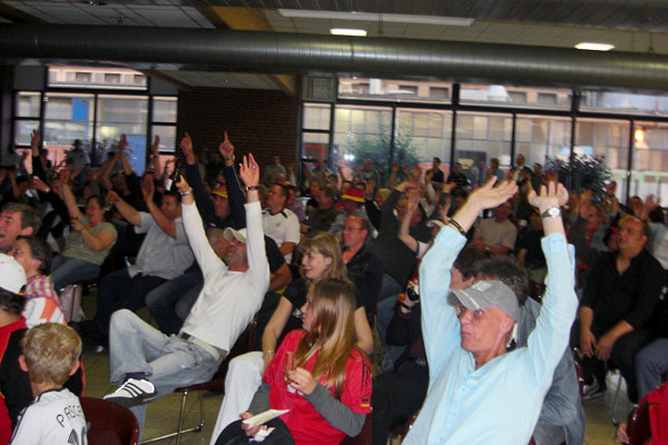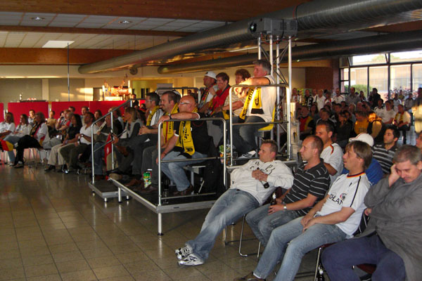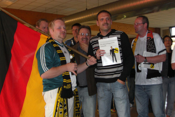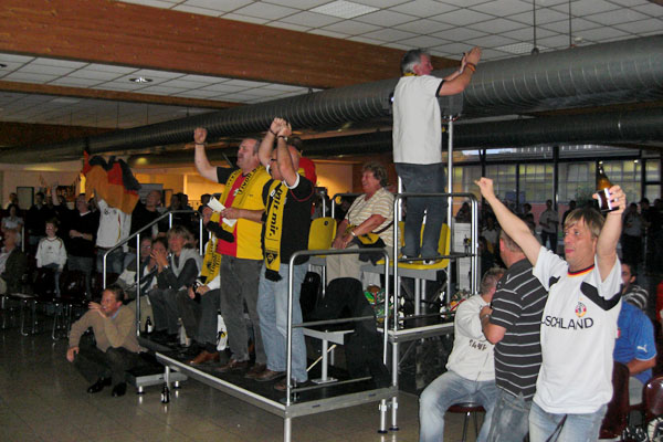 Nach einer euphorischen Ansprache des Gewinner, in der er auch preisgab, wer auf den acht Plätzen des gelben Ranges Platz nehmen darf, folgte die Übertragung des entscheidenden Spiels der deutschen Mannschaft in der EM-Vorrunde.