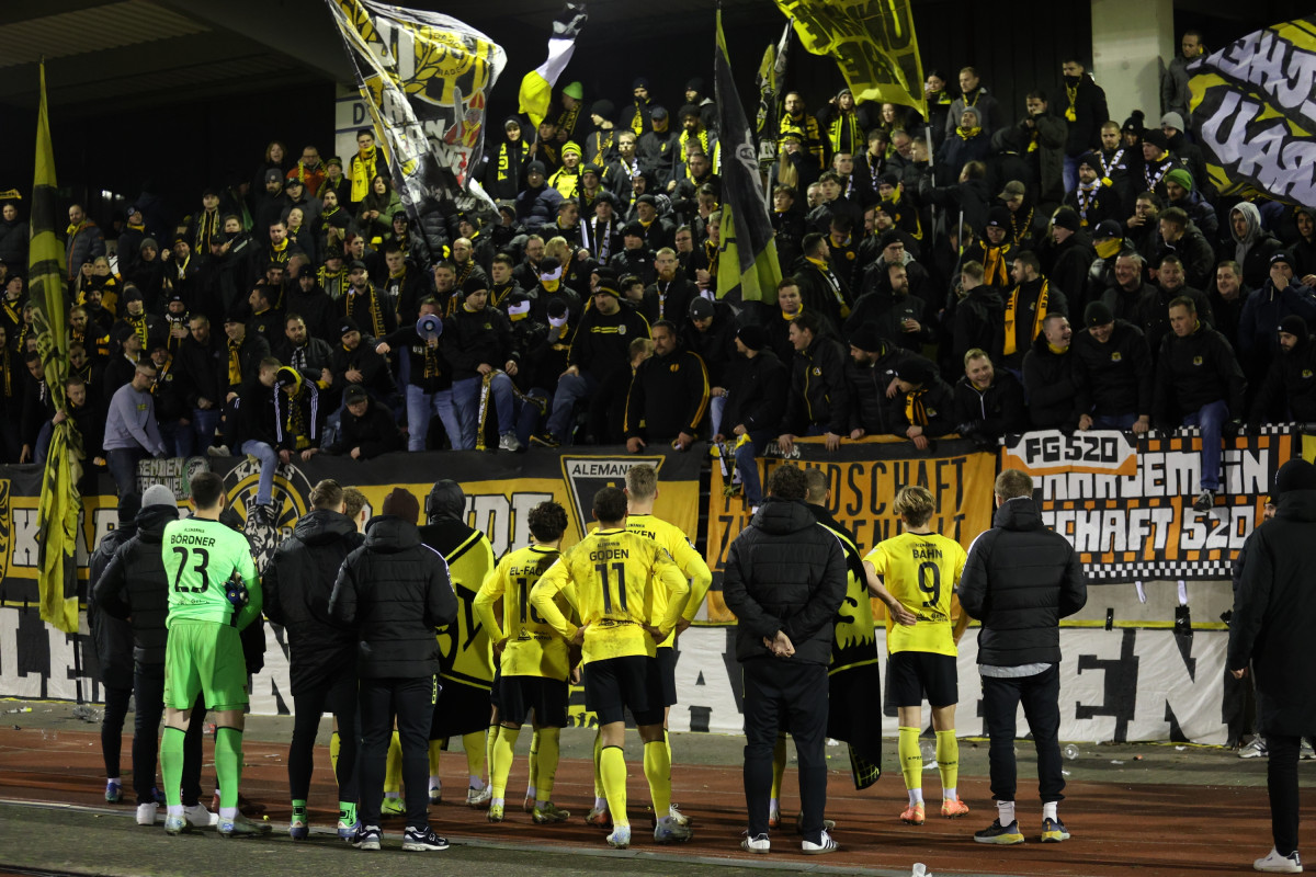 In der Verlängerung nutzten die Schwarz-Gelben dann ihre Chance: Eine Flanke von El-Faouzi wurde nicht konsequent geklärt, Charlison Benschop stand goldrichtig und traf zum 1:0. Das war die Entscheidung. Die Aachener warfen alles rein, verteidigten leidenschaftlich – und durften am Ende mit tausenden mitgereisten Fans einen der emotionalsten Abende der jüngeren Vereinsgeschichte feiern. Und durften am Ende eines emotionalen Abends mit tausenden mitgereisten Fans den Einzug ins Bitburger-Pokalfinale feiern.